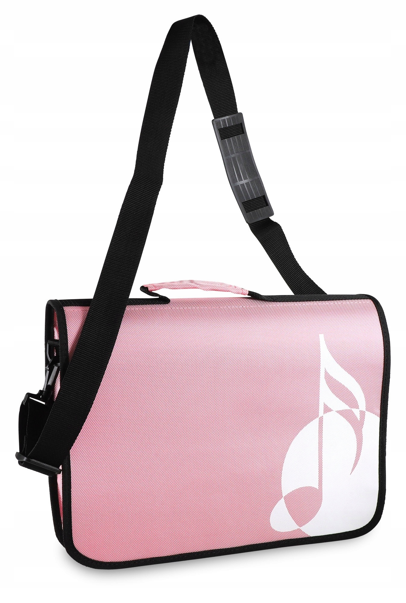 Практичний виробник мішків Класичний Cantabile для нотаток з 2 відділеннями - велика камера 15 х 15 см, невелика камера 9,5 х 7,5 см, сумка та знімний ремінь. Він має внутрішні відділення для ручок та інших аксесуарів. Чудовий дизайн з білим мотивом із шістнадцяти ноти, рожевим.
