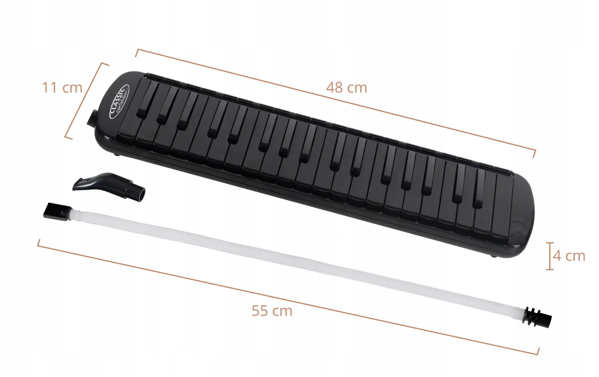 Чорна мелодіка, виготовлена з гігієнічної, легкої в чистоті пластику з 37 клавішами та тональним діапазоном f - fl. Набір також включає обкладинку, мундштук та шланг.