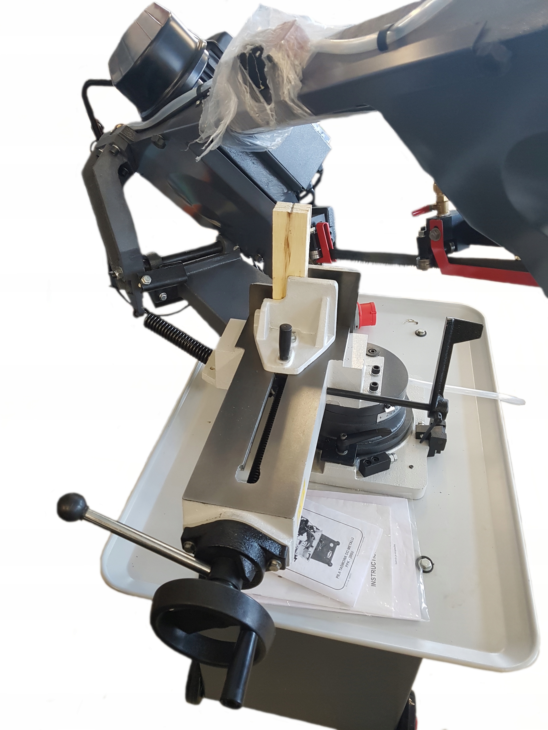 - Різання матеріалів під кутом можливе за допомогою поворотних лещат або обертового кронштейна пилки