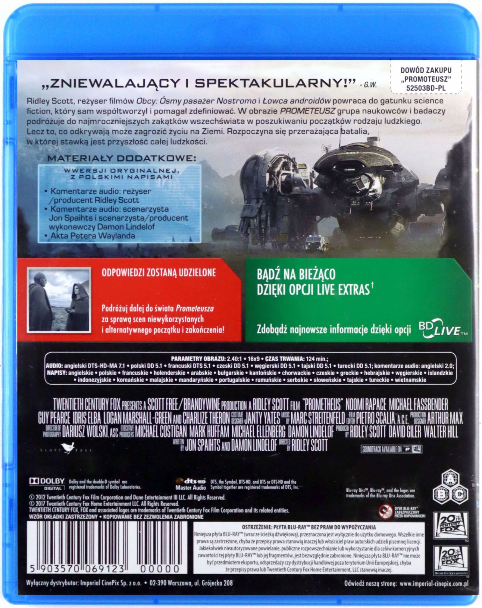 Просматривая «ПРОМЕТЕЙ (Майкл Фассбендер) (BLU-RAY)» данный товар из каталога «научно-фантастический» вы можете быть уверены, что после оформления заказа, доставки в Украину, вы получите именно то, что заказывали, в оговоренные сроки и европейского качества.