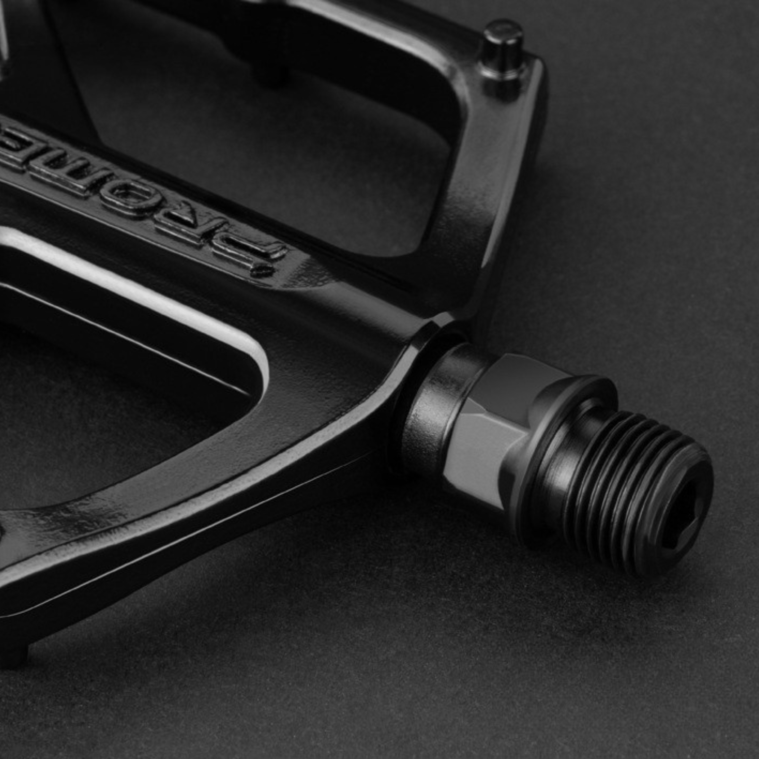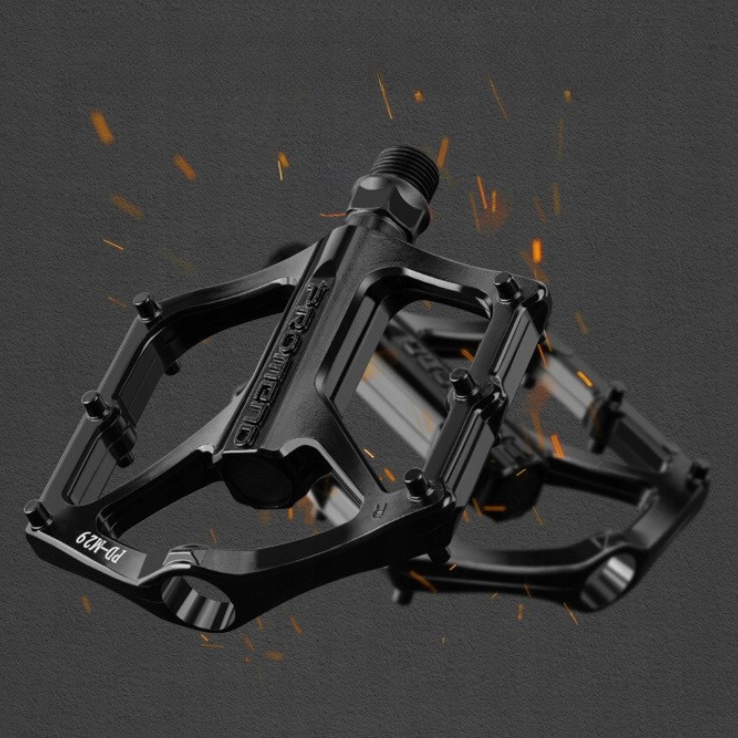 Виготовлений з високоякісного алюмінію , педалі легкі, і в той же час, стійкий до пошкодження та інтенсивного використання. Широка платформа і не -слизні штифти гарантують відмінне зчеплення для ніг, що має вирішальне значення у складній місцевості. високоякісні підшипники забезпечують безперебійну роботу та ефективну педалі, що перетворюється на кращий контроль над велосипедом та комфортом їзди.