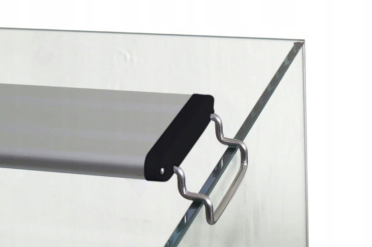 - Твердий і водночас тонкий алюмінієвий корпусз пластиковими елементами елегантний і сучасний. Регульовані ніжки забезпечують стійке кріплення на краях тераріуму.