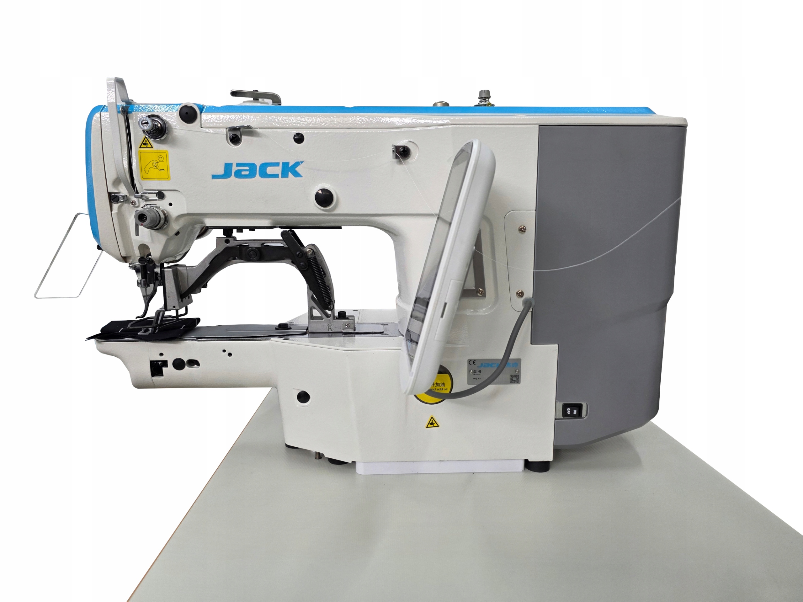 ◾JACK JK-T1900GSK — це електронно керована, повністю програмована 1-голкова, 2-ниточна прихватна машина з функцією пришивання ґудзиків. Максимальна площа шиття становить30х40 мм. Максимальна швидкість шиття становить 3200 стібків/хв.