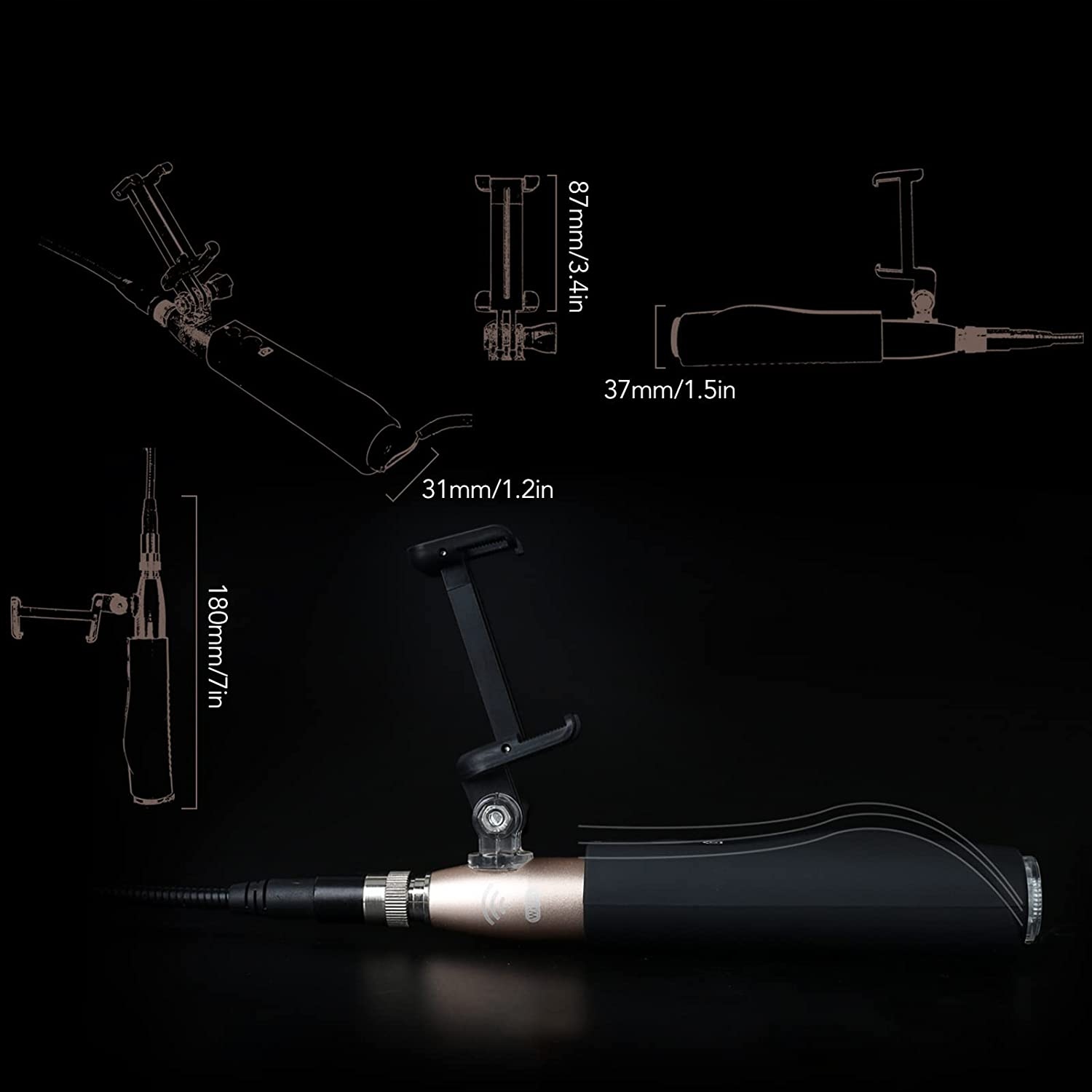 Зі світлодіодами. 8 світлодіодів забезпечують чітке зображення в наших ендоскопах у темряві, що полегшує перевірку. З гнучким кабелем Ця ендоскопічна камера з гнучким кабелем забезпечує легкий доступ до темних і вузьких місць для неруйнівного контролю. З підставкою в комплекті. Ендоскопічну камеру можна підтримувати підставкою для роботи обома руками. Ергономічно розроблена рукоятка дозволяє зручно піднімати наш ендоскоп для зручного перегляду. Широка сумісність Цю камеру ендоскопа можна легко підключити до вашого пристрою через Wi-Fi, сумісну з пристроями IOS, Android і Windows без необхідності використання додаткових адаптерів або кабелів.