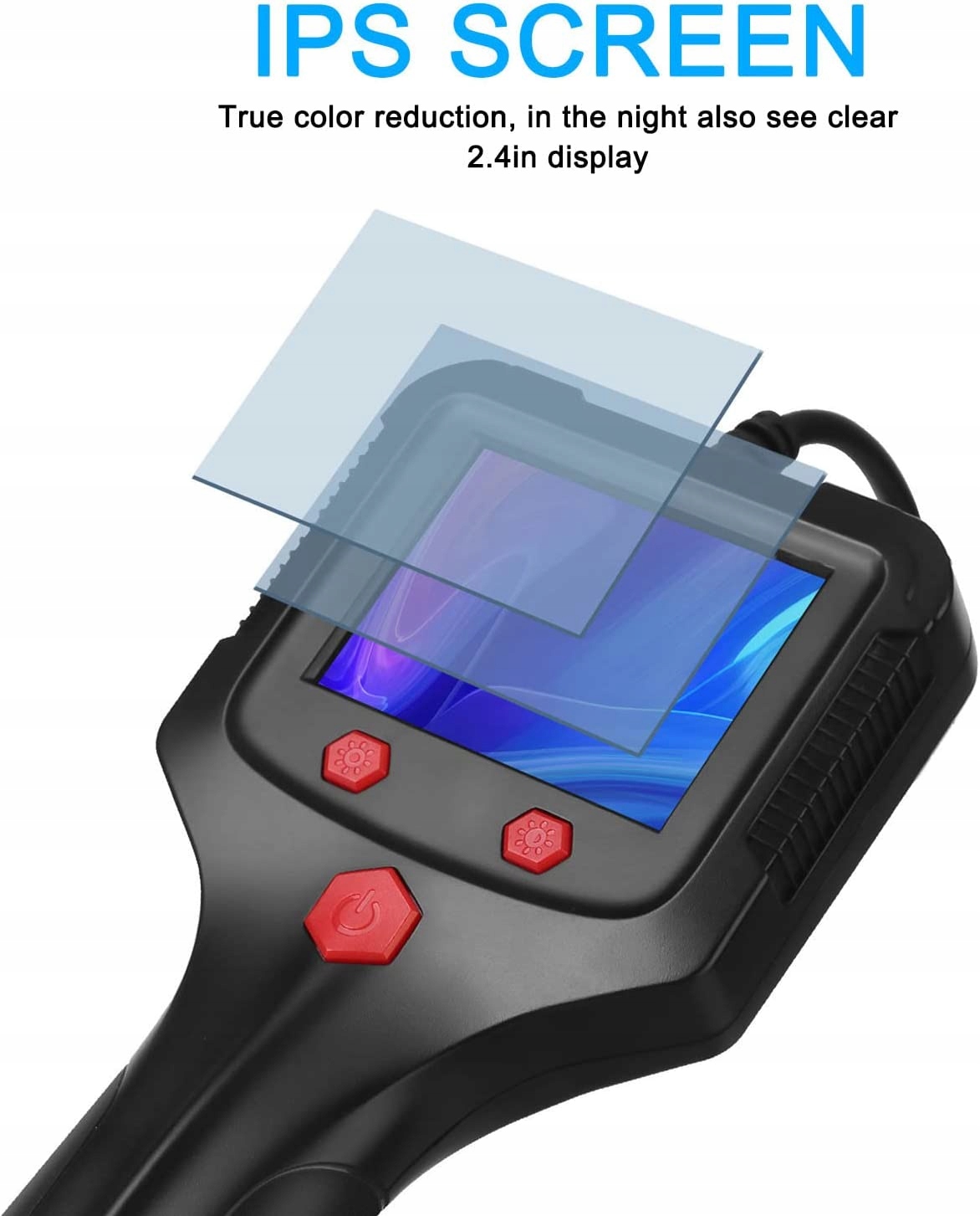 Дисплей HD. Ендоскоп оснащений дисплеєм з високою роздільною здатністю 1080P і екраном IPS із справжнім відтворенням кольорів, що дозволяє чітко бачити в темряві. Усунення сліпих зон Ендоскопи придатні для огляду в різних місцях, які важко безпосередньо спостерігати оком, а вихідні відеосигнали можна легко відобразити. Довгий час роботи від батареї Після повного заряджання ендоскоп можна безперервно використовувати протягом п’яти годин і має тривалий час роботи від батареї, що дає змогу працювати тривалий час. Ергономічна ручка Ручка ендоскопа розроблена з ергономічною механікою, що робить її зручнішою для тримання, щоб ви почувалися краще під час роботи та не втомлювалися. Широке застосування. Ендоскопи широко використовуються в ремонті автомобілів, промислових трубопроводах, хімічній промисловості та інших галузях промисловості, які не підходять для спостереження.