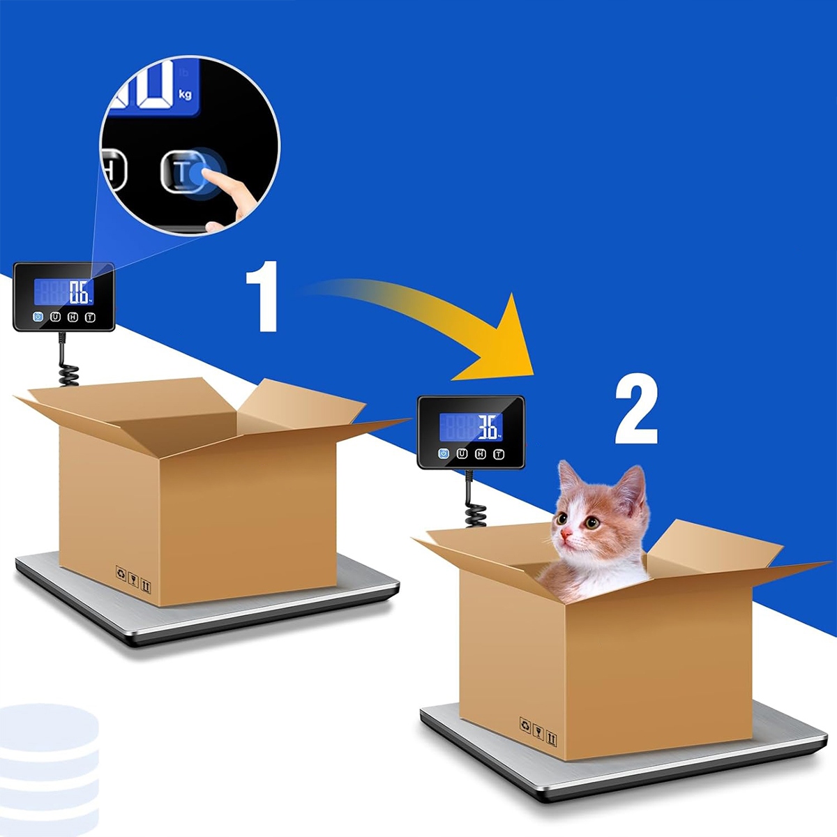 Поштова шкала 200 кг, міцна вага цифрової посилки з РК -дисплеєм/Hold/TARA, поштовою вагою з нержавіючої сталі для доставки посилків/багажу/пошти/тварин, батареї та джерела живлення через USB (срібло)
