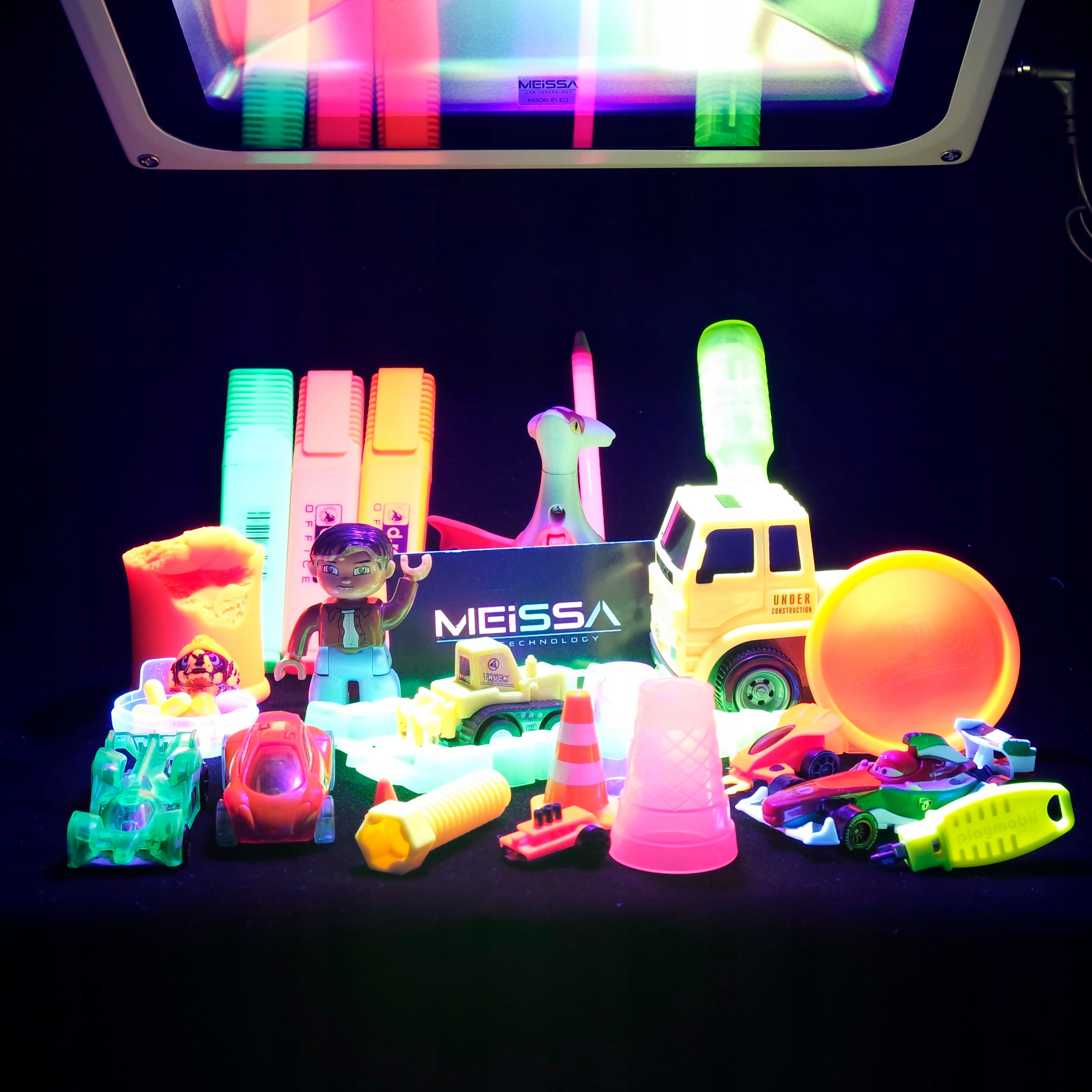 Лампа MEiSSA UVA 395nm ± 5nm містить 20 високоефективних світлодіодів Bridgelux 3 Вт (не COB) із загальною потужністю 60 Вт. За короткий час твердне різні види клеїв і фарб на основі смоли. Відрізняється дуже високим рівнем випромінювання Ee=9,742 мВт/см2, завдяки чому твердне практично на льоту- поки тече. Професійну УФ-лампу можна використовувати в багатьох місцях, зокрема: в автомобілебудуванні, в скляній промисловості, ремеслах, виявлення витоків у кондиціонерах повітря та перевірка в області інсталяції, у створенні друкованих плат з використанням фоточутливої фольги, зміцнення фоточутливих смол у процесі 3D друку, реклама .
