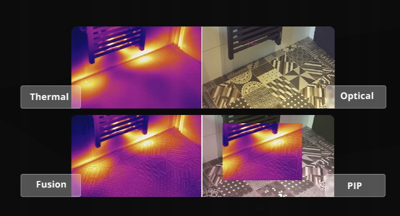 - pip (малюнок на малюнку) - дозволяє застосувати теплове зображення на візуальне зображення (як правило, у невеликому вікні) або навпаки