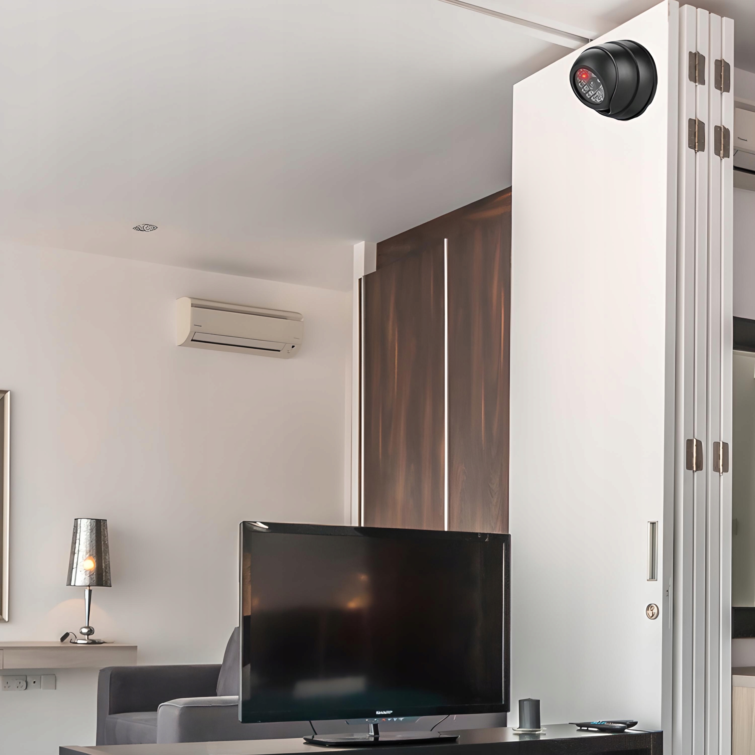 Манекен можна прикріпити до будь-якої поверхні на будь-якій площині. Складальні елементи включають дві батареї типу AAA, необхідні для роботи червоного світлодіода, а також штифти та гвинти для забезпечення стабільності підключеної камери. Завдяки легкому монтажу ми можемо легко прикріпити манекен до стіни або стелі. Камера не потребує обслуговування, тому лише її монтаж ми можемо забезпечити її ефективність. Макет камери можна регулювати, повертаючи її та змінюючи напрямок огляду.