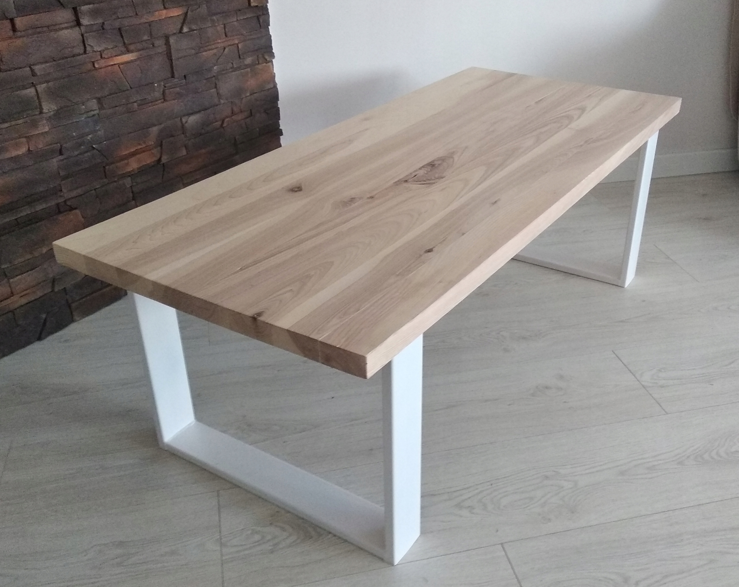- Матеріал: стільниця з масиву дерева ясена (можна дуба або старого дерева - фото - після консультації) ніжки зі сталевого профілю з порошковим покриттям
