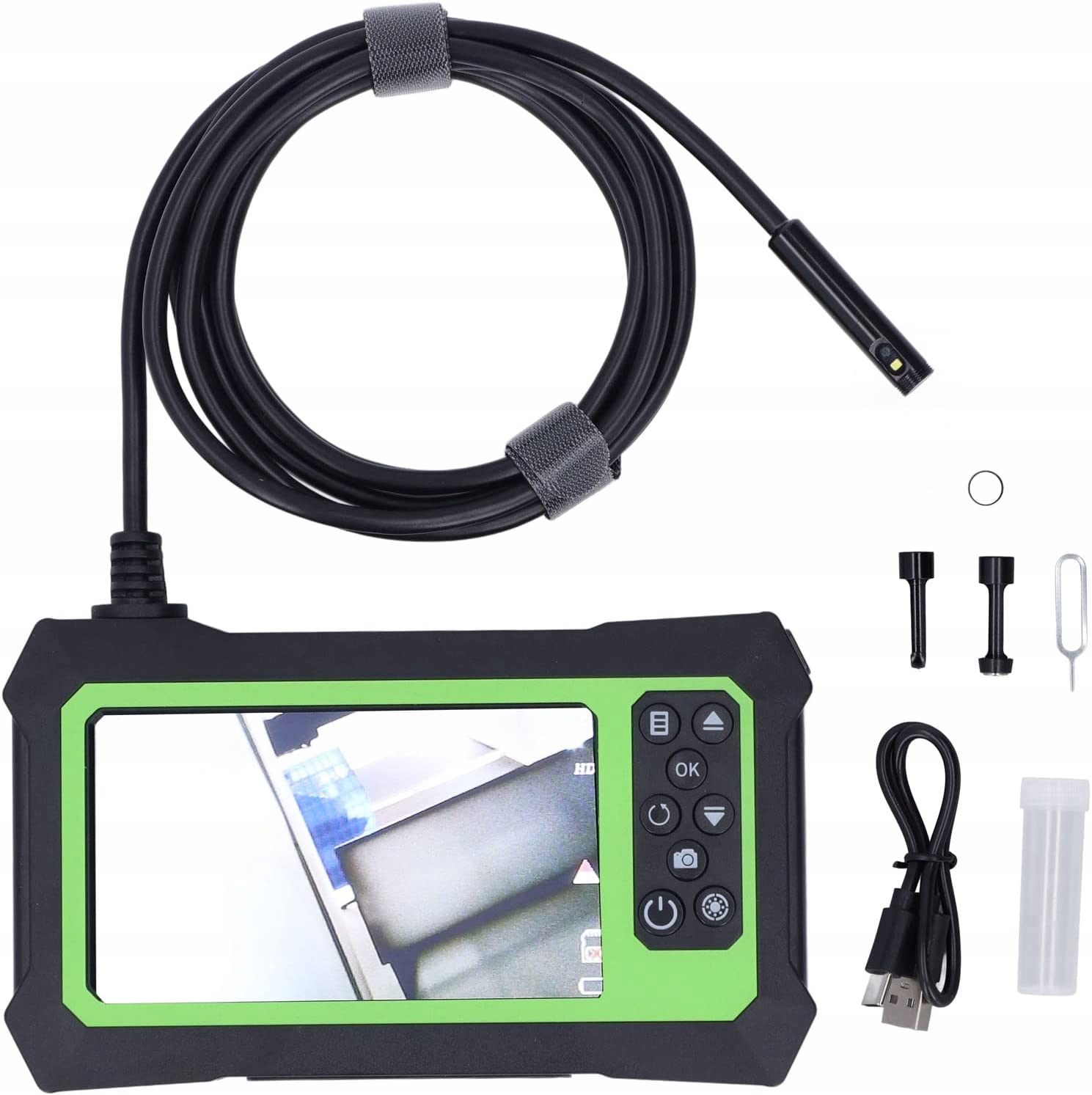 Велика практичність Ендоскоп використовується для огляду в різних місцях, які важко побачити, де можна знімати фотографії та відео, лінза оснащена яскравим світлом і може регулюватися залежно від оточення. Екран дисплея Завдяки екрану з високою роздільною здатністю 1080P ви можете легко перевірити цільову ситуацію, зручну для робіт з технічного обслуговування. Огляд під кутом 90 градусів Кут огляду цього ендоскопа становить 90 градусів, що забезпечує великий діапазон огляду та широке поле зору. Високоміцний корпус Оболонка використовує високоміцний матеріал ABS, який є міцним, його нелегко пошкодити та має високу міцність. Широке призначення. Цей ендоскоп можна широко використовувати в оздобленні інтер’єрів, хімічній промисловості, перевірці трубопроводів, обслуговуванні кондиціонерів, авіаційній промисловості, гальваніці, автомобільній промисловості тощо.