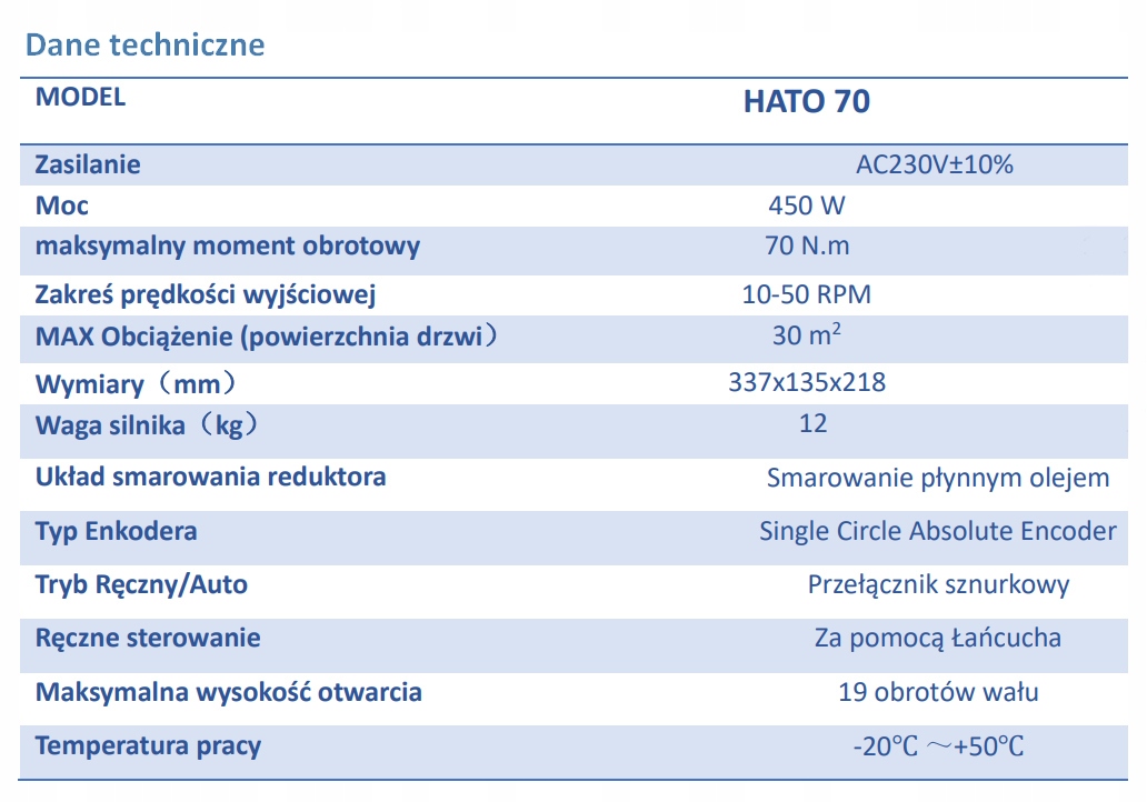 Привід воріт HATO 70 можна використовувати в гаражах, промислових і службових будівлях. Відрізняється компактною конструкцією, надійністю та безпечною експлуатацією.