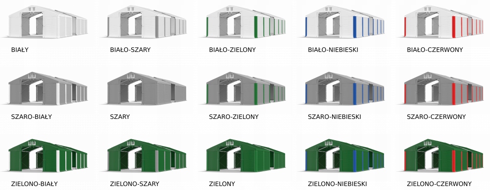 білий, біло-сірий, біло-зелений, біло-синій, біло-червоний, сіро-білий, сірий, сіро-зелений, сіро-блакитний, сіро-червоний, зелено-білий, зелено-сірий, зелений, зелений -синій, зелено-червоний