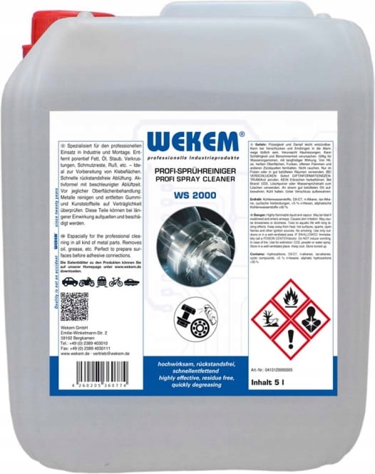 WS 2000 — це професійний промисловий очисник для професійного використання в промисловості та складанні. Видаляє жир, масло, пил, відкладення, залишки бруду, кіптяви тощо. Ідеально підходить для підготовки клейових поверхонь. Швидко випаровується без залишку завдяки своїй активній формулі. Гумові деталі та пластикові поверхні.
