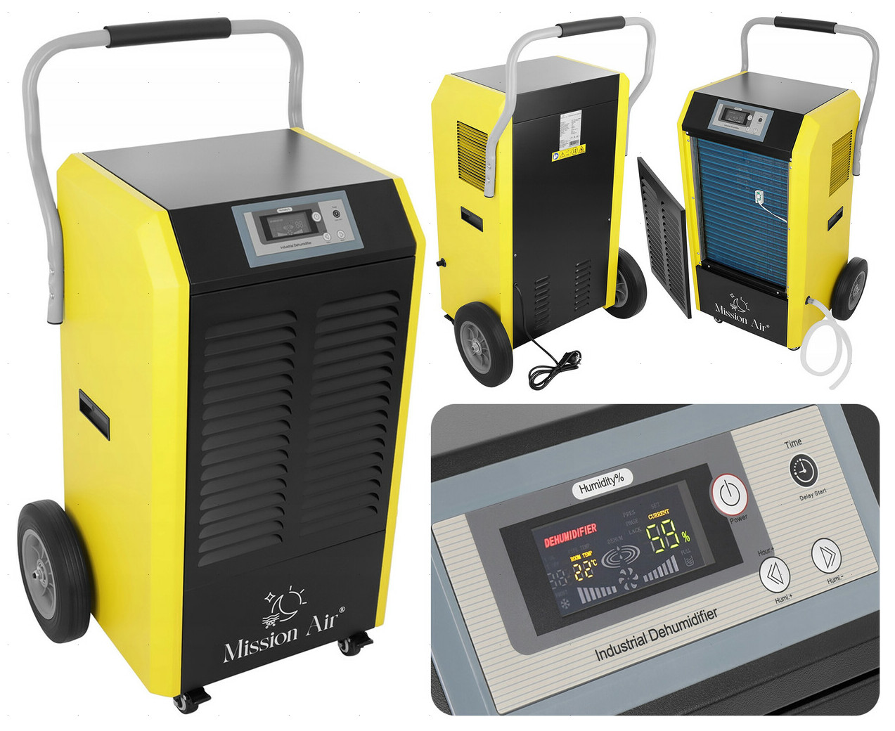 Модель Mission Air DEHUMI 90L - це довговічний пристрій із широким спектром застосування, який усуває вологу з приміщень у будинках, офісах, гаражах, виробничих цехах і будівлях, що будуються. . Ця модель оснащена функцією автоматичного розморожування, завдяки чому має дуже широкий робочий діапазон навіть при більш низьких температурах. Осушувач має зрозумілу панель керування з дисплеєм, який дозволяє встановити цільову відносну вологість повітря, а функція таймера дозволяє встановити години роботи пристрою. Воду, яку збирає осушувач, слід зливати у зовнішній резервуар за допомогою зливного шланга. Стійка конструкція візка, великі колеса та ручка для транспортування значно полегшують транспортування та зміну місця використання.