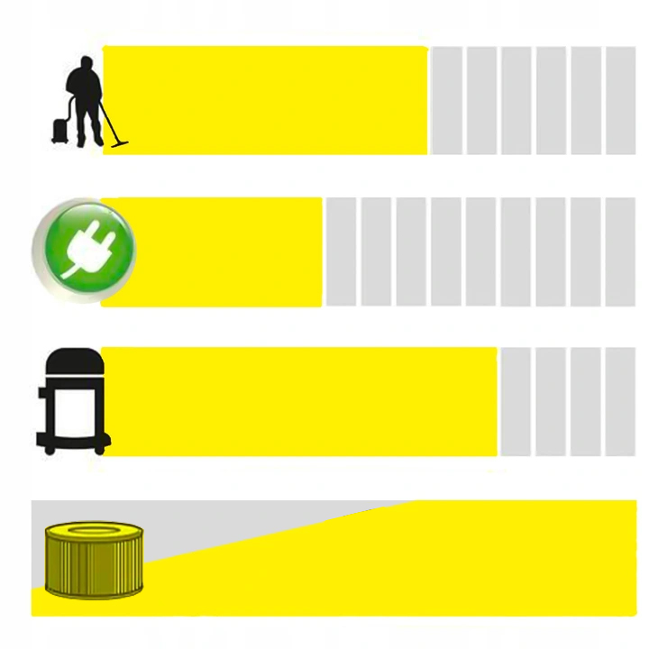 Пилососи WD відрізняються не тільки високою потужністю всмоктування, але й низьким споживанням електроенергії. Завдяки високоефективним двигунам споживання енергії зменшено до 30%! Незмінно висока потужність всмоктування та швидка заміна фільтра!
