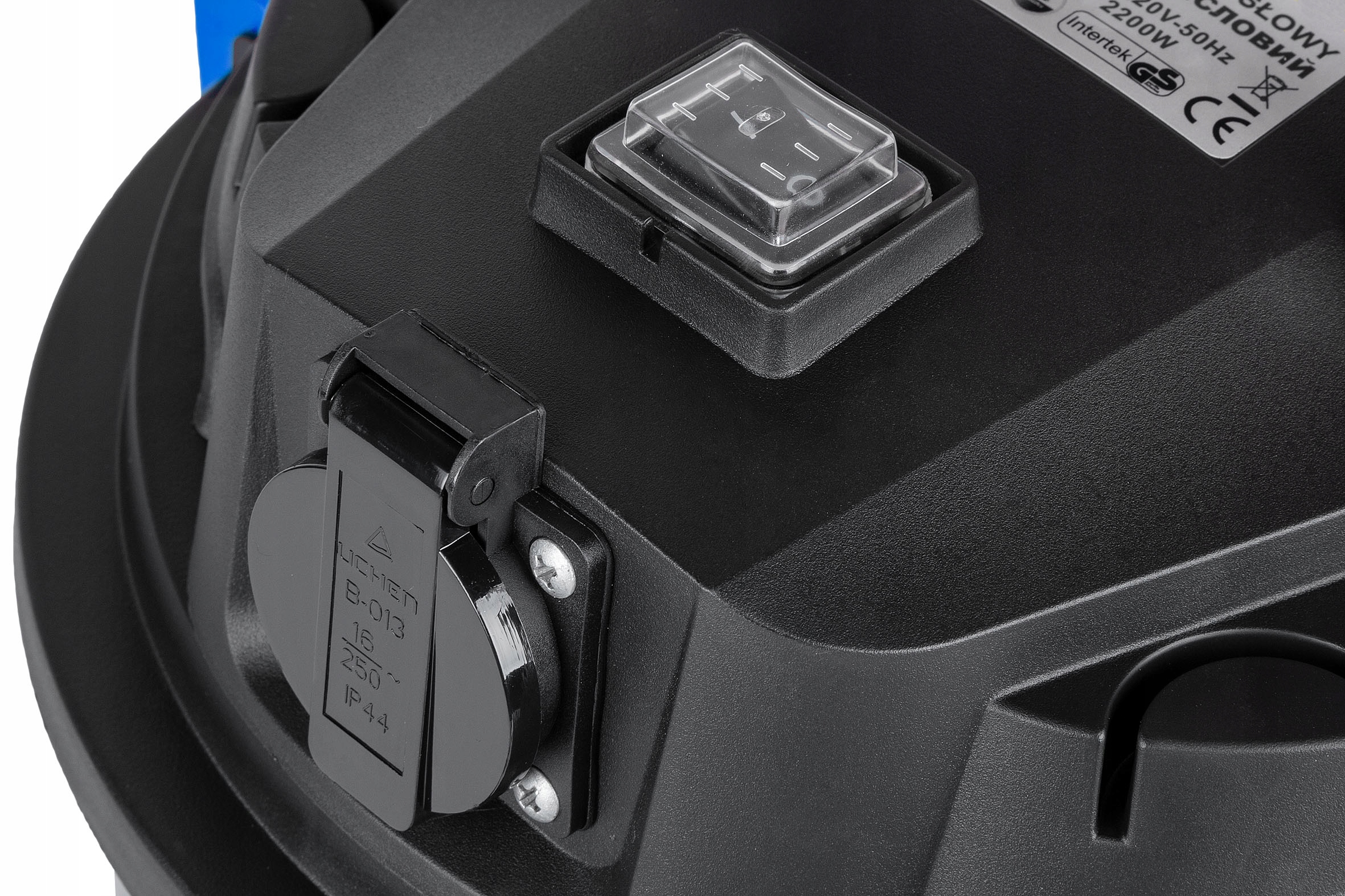 Вбудована розетка, розташована у верхній частині кришки пилососа використовується для підключення електрообладнання та інструментів. Ви можете використовувати його наприклад, за допомогою шліфувальної машини для штукатурки, шліфувальної машини для дерева та інші електроінструменти з розеткою для видалення пилу.