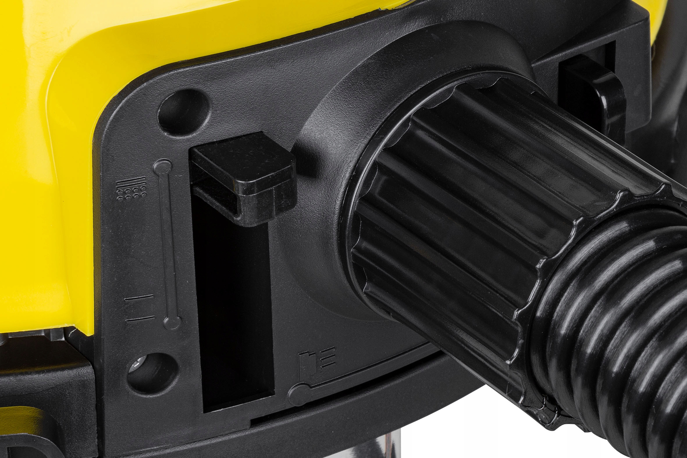 Вбудована розетка, розташована у верхній частині кришки пилососа, використовується для підключення електричних аксесуарів та інструментів. Його можна використовувати, наприклад, із шліфувальною машиною для штукатурки, шліфувальною машиною по дереву та іншими електроінструментами з виходом для відведення пилу.