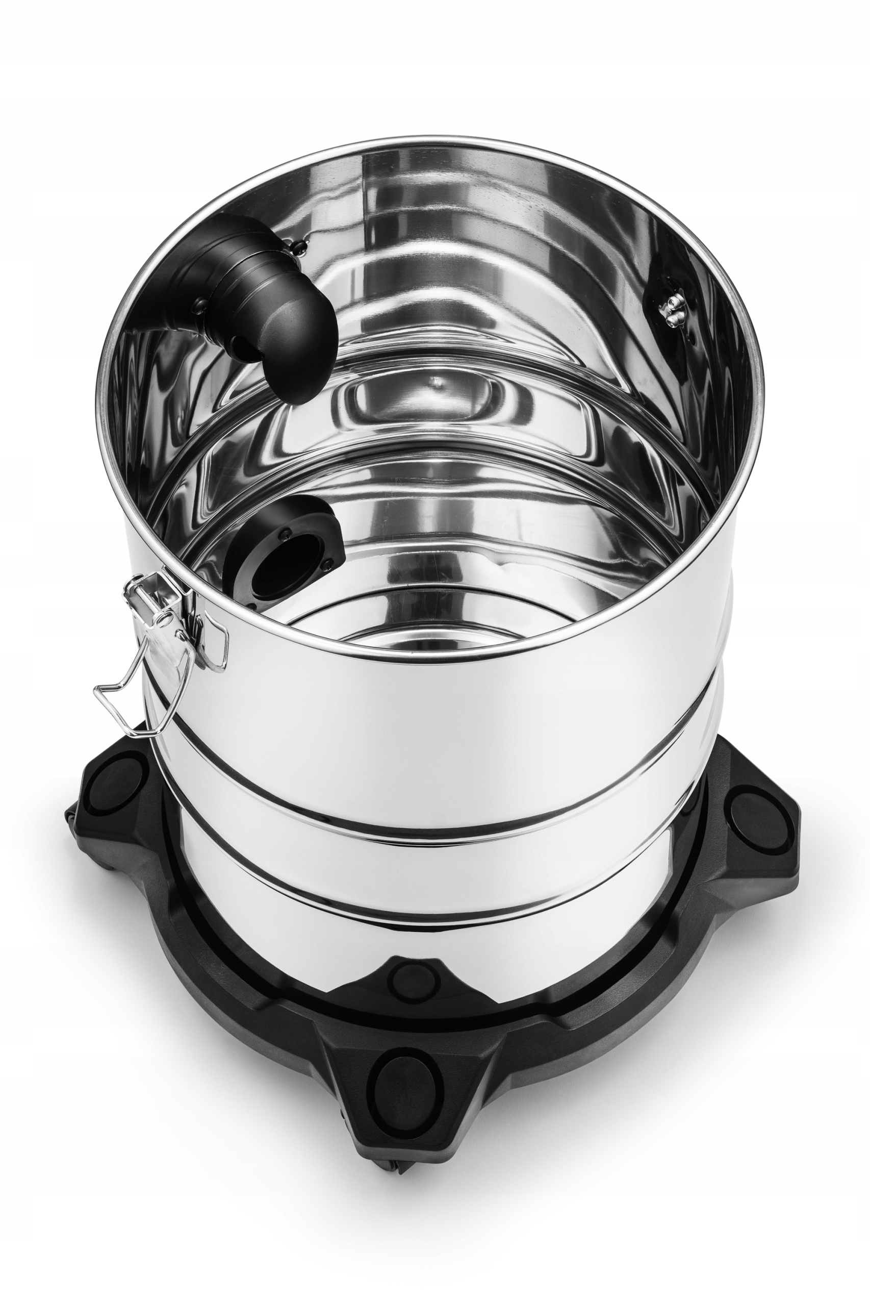Пилосос оснащений великим баком об'ємом 25 літрів, тому нам не потрібно його часто спорожняти. Після заповнення резервуара вміст легко випорожнити. Вам не обов'язково купувати мішки для пилососа - ви економите на заміні мішків. Додатково в бачок встановлена пробка для зливу води.