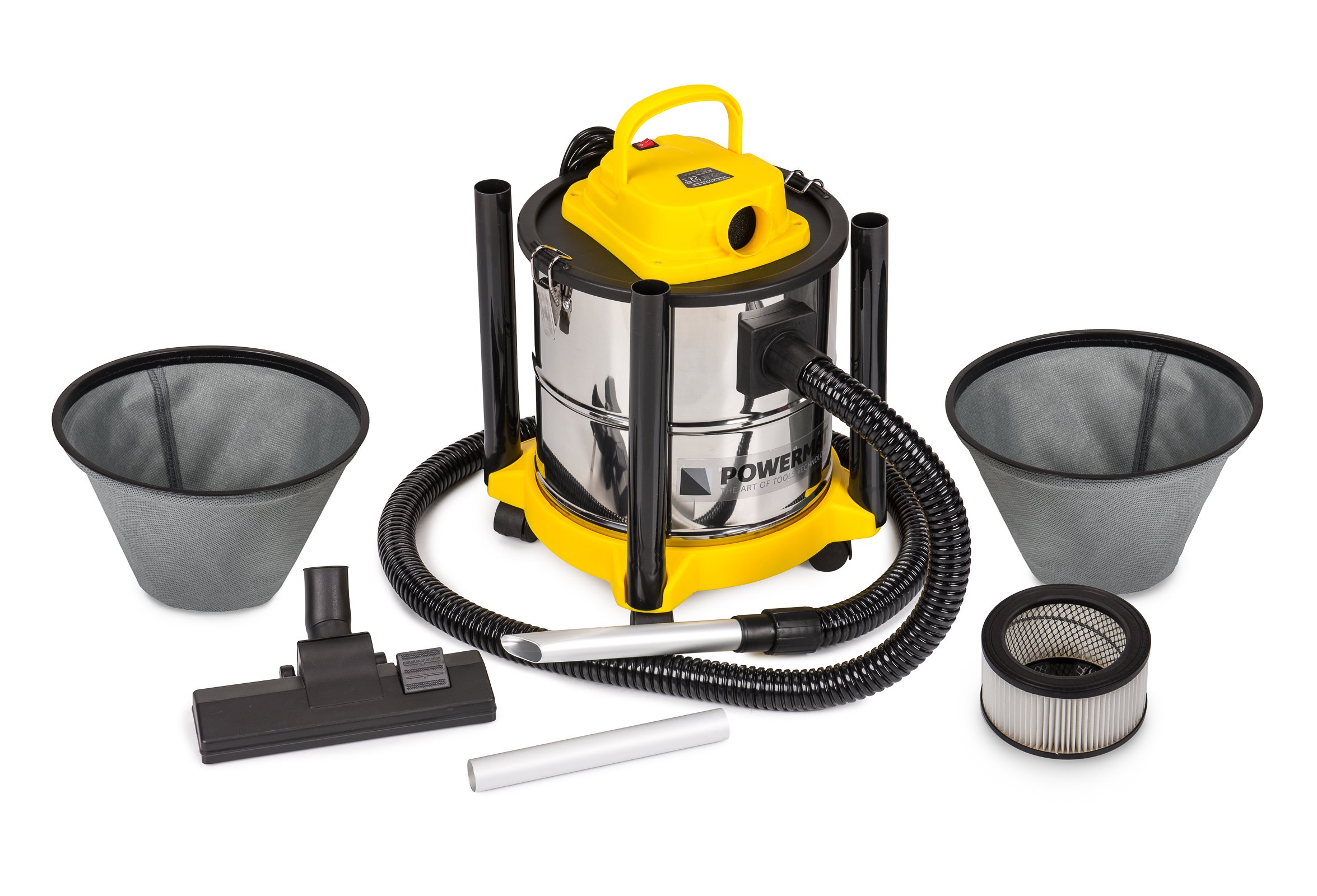 Жаростійкий бак з нержавіючої сталі об'ємом 20 літрів дозволяє працювати без частого спорожнення золи. Завдяки великій ємності бака ми можемо легко використовувати пристрій як промисловий пилосос.