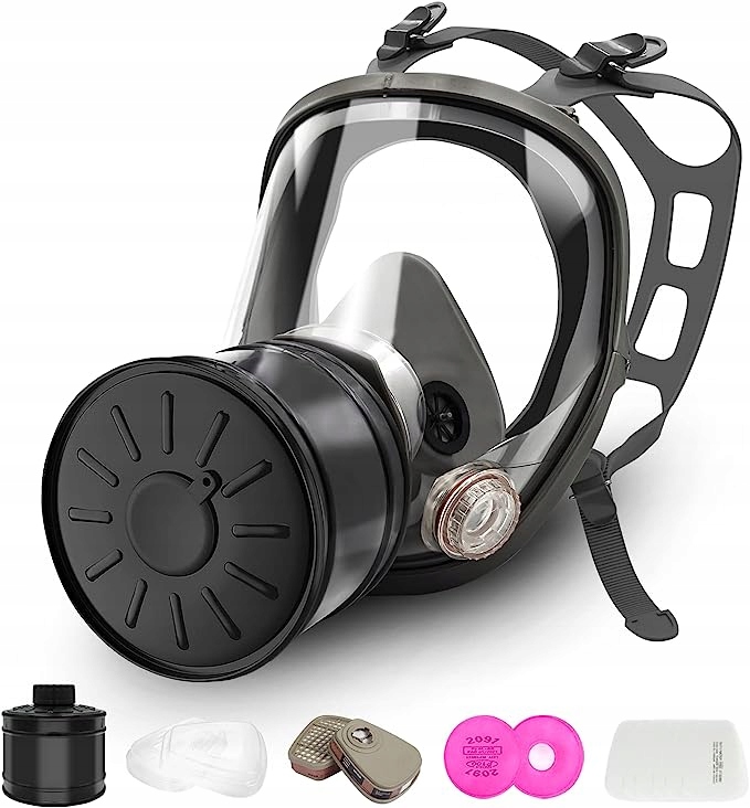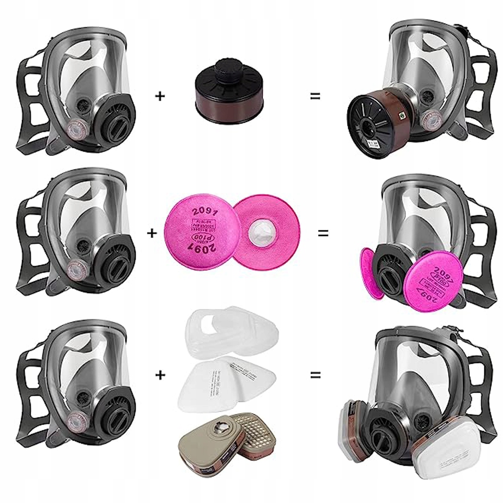 На краю напівмаски є подвійний шар силікону, який щільно прилягає до обличчя та забезпечує надійний захист. Повнолицева маска з фільтром з активованого вугілля та подвійним фільтром з активованого вугілля, виготовлена з високоякісних матеріалів.