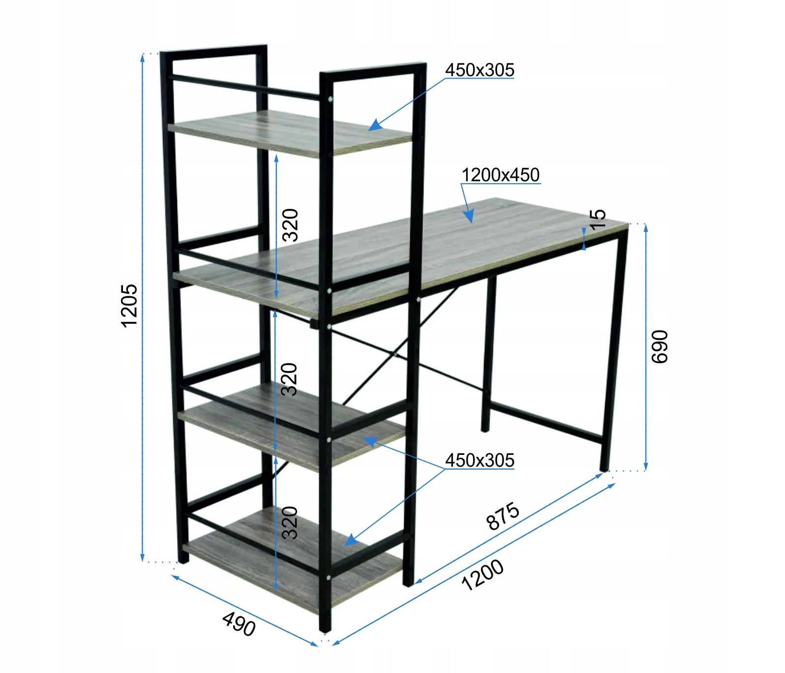 ВЕЛИКИЙ СТІЛ ІНДУСТРІАЛЬНА КНИЖКА З ПОЛИЦЮ ЛОФТ АКЦЕНТ-16