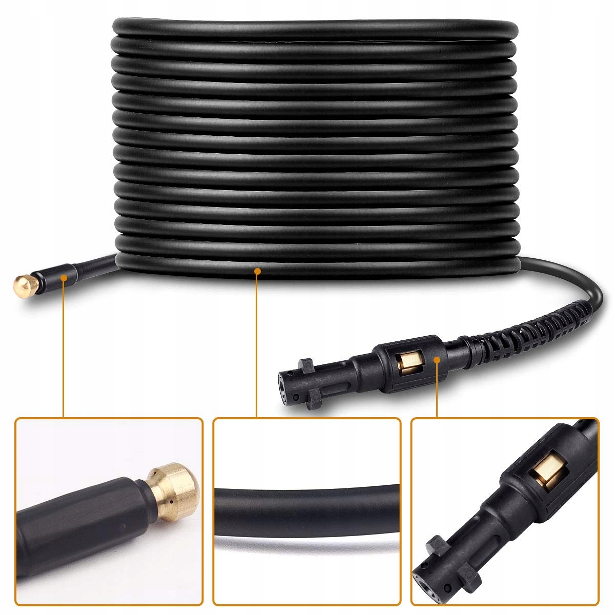 1. Високо -явість -шланг для чищення високого тиску для k. Матеріал ПВХ та нержавіюча сталь, стійкий до корозії та довговічний. Очищення шланга гнучкий і легкий у згинанні, стійкий до зносу. Шланг для чищення високого тиску підходить для очищення холодної води. Простий у встановленні шланг використовується для очисних автомобілів, каналізаційних труб тощо.
