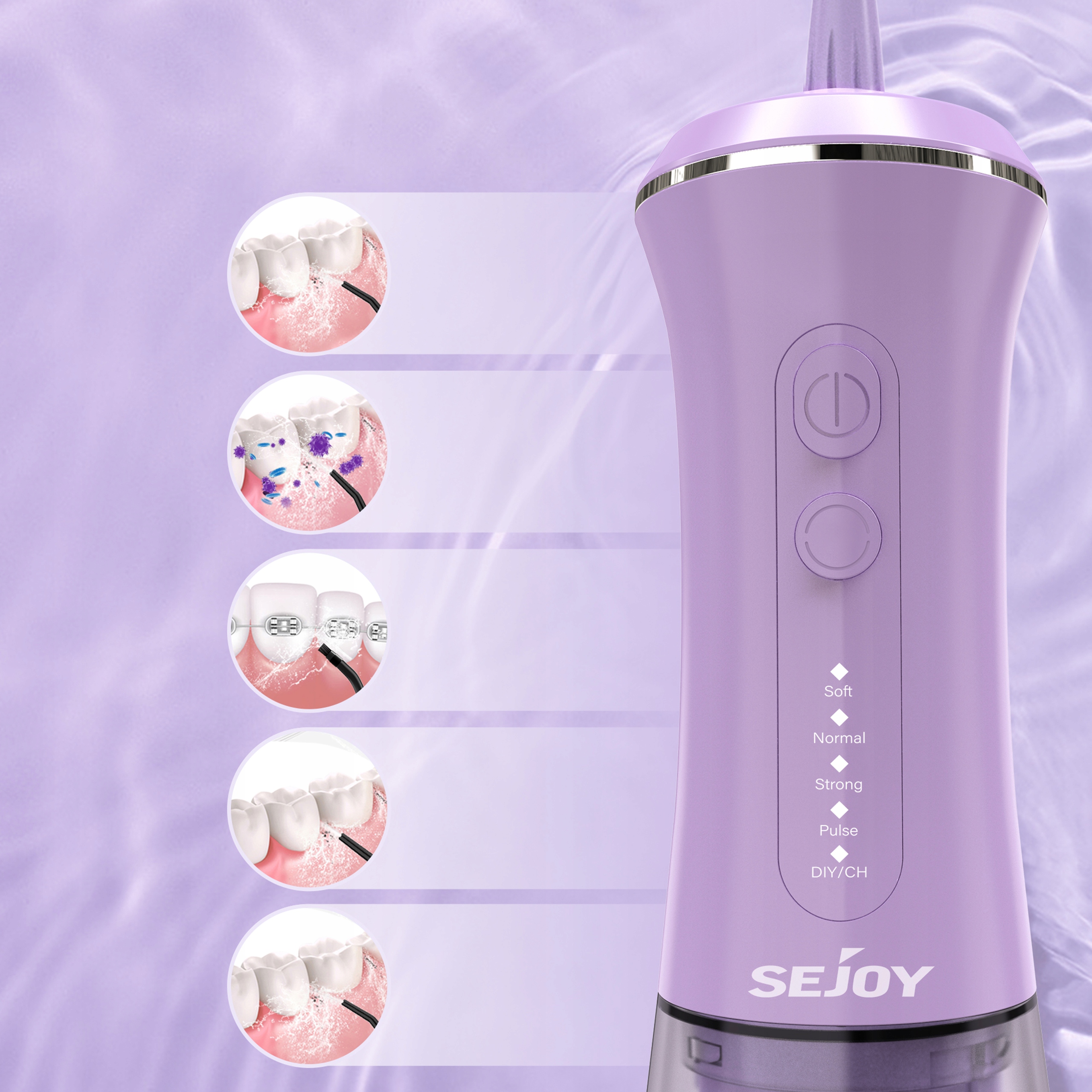 Бездротовий іригатор Sejoy використовує вдосконалену професійну технологію пульсації та ергономічний дизайн, щоб допомогти вам очистити кожен куточок рота. Пульсуючий водяний стовп високої інтенсивності видаляє 99,99% частинок їжі та плям на зубах, які неможливо видалити традиційною щіткою та зубною ниткою. Це допомагає покращити здоров’я зубів і ясен, ефективно масажує ясна та сприяє кровообігу.