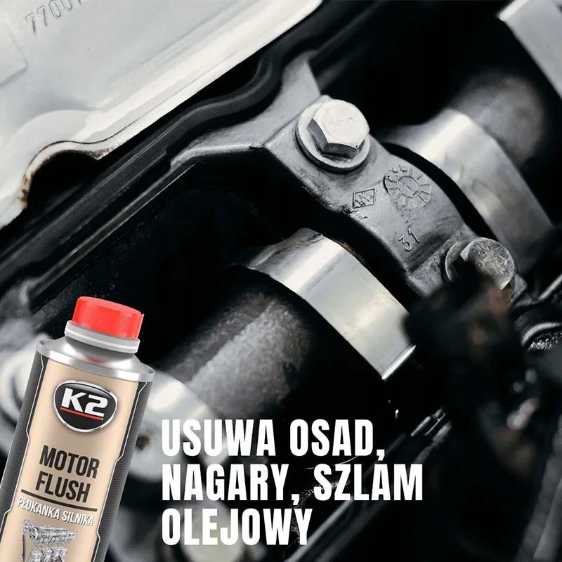 K2 Motor Flush можна використовувати у всіх двигунах внутрішнього згоряння - дизельних, бензинових і газових. Спеціальні змащувальні присадки, що містяться в промивці, захищають двигун від надмірного тертя, яке може виникнути внаслідок розрідження оливи після додавання промивки. K2 Motor Flush повністю безпечний для двигуна.