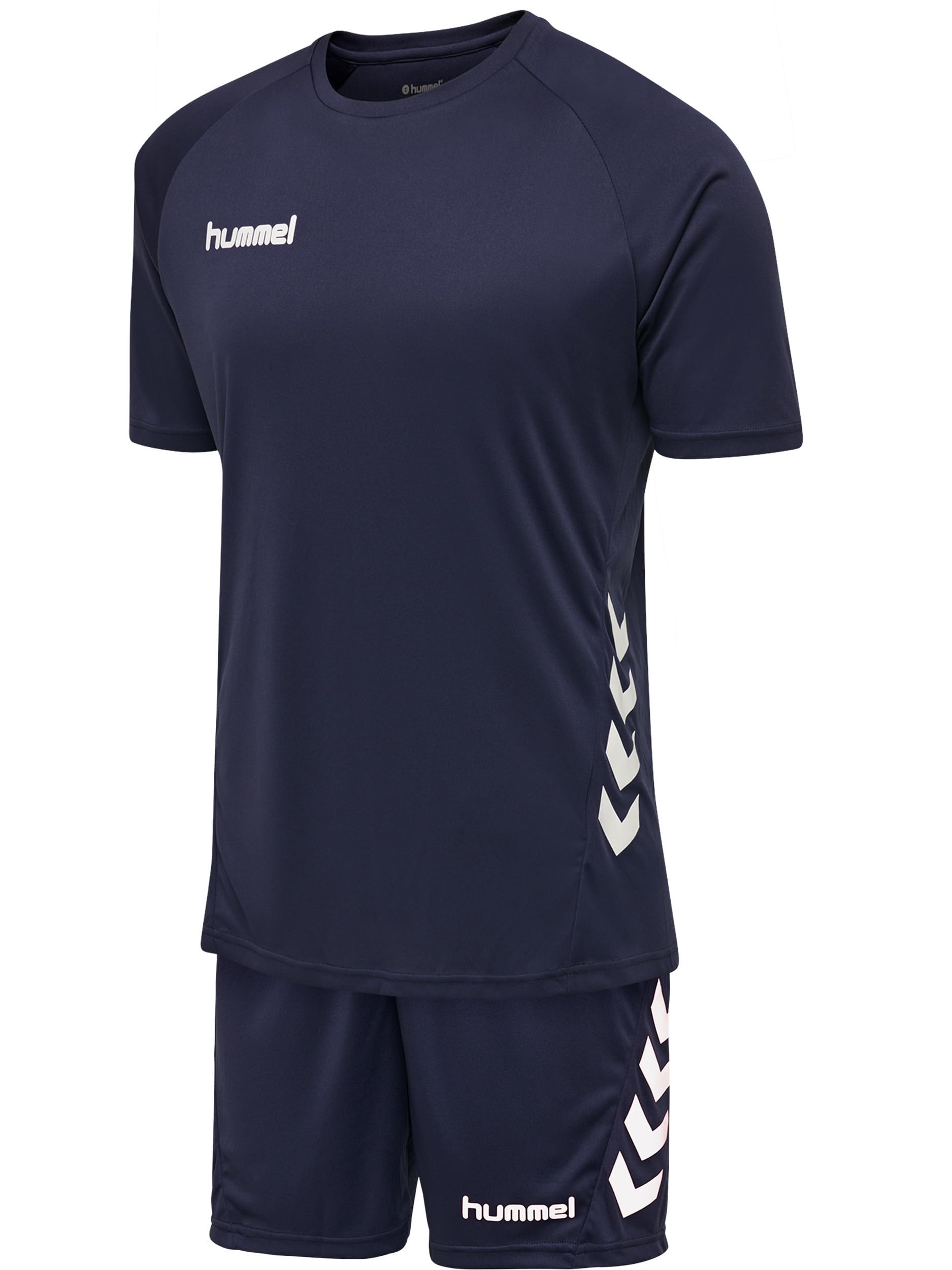Опис Набір hmlPromo поєднує в собі футболку з відповідними тренувальними шортами та ідеально підходить для футболу, гандболу чи інших видів спорту. Верх цього комплекту Hummel має короткі рукави реглан для додаткової свободи рухів. Еластичний пояс на шортах має шнурок, що дозволяє фіксувати посадку.