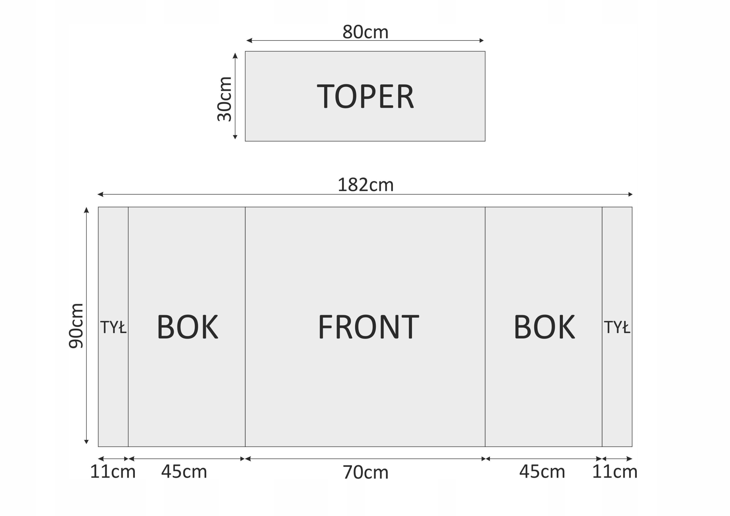 Розмір у розкладеному вигляді: 91 x 222 см