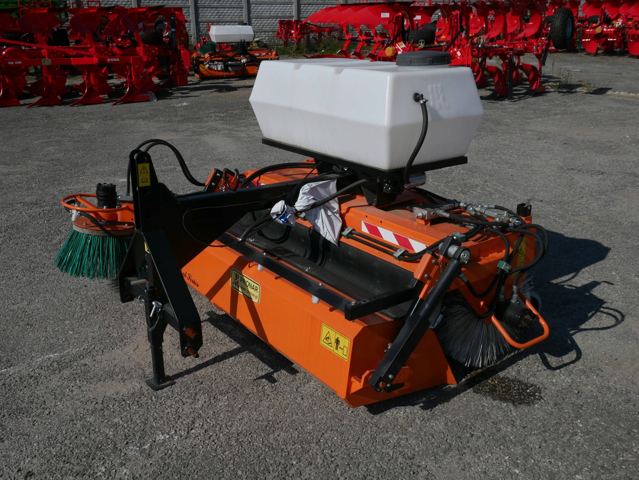 Предметом реклами є тракторна підмітально-прибиральна машина PRONAR AGATA ZM-1600, оснащена боковою щіткою та розбризкувачем