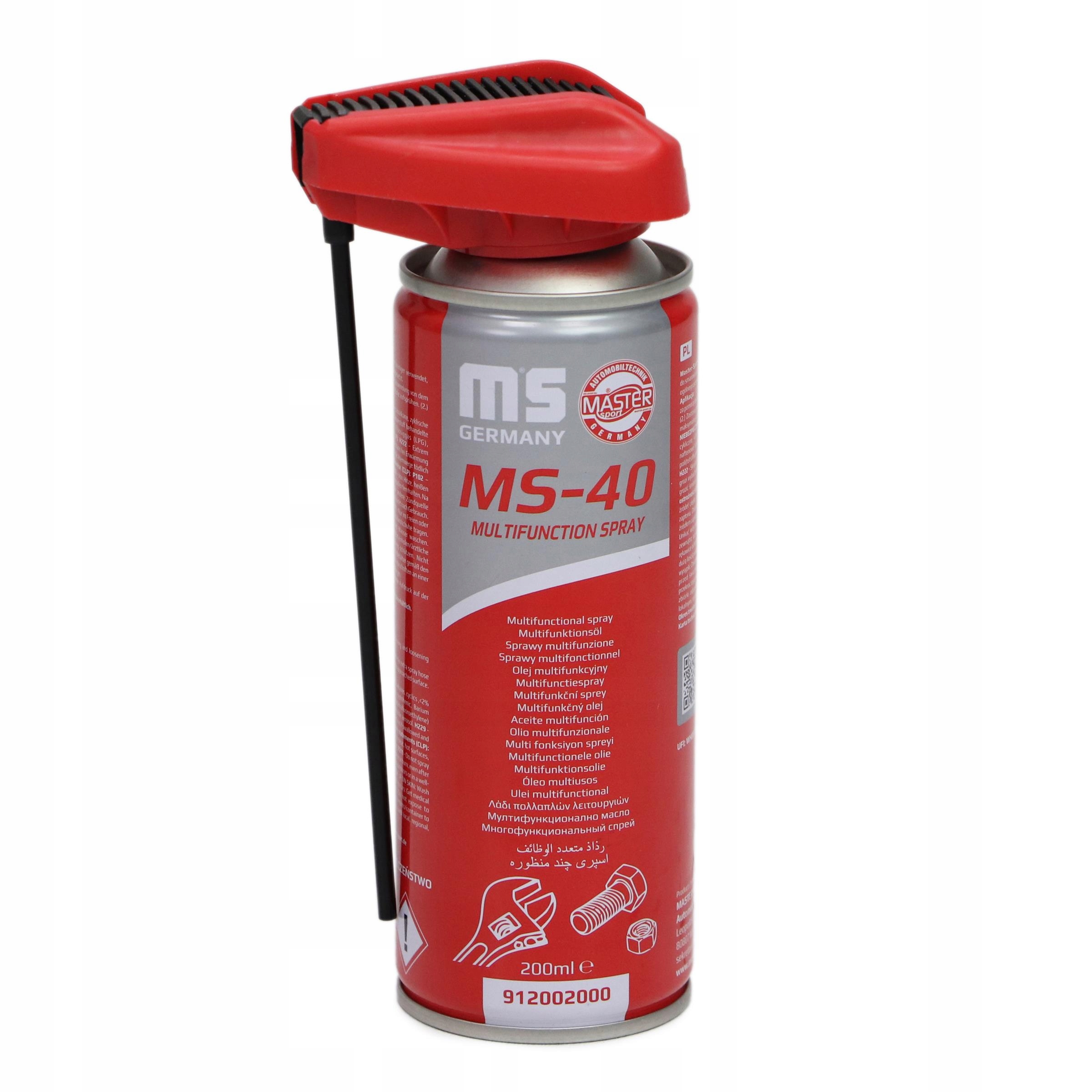 MS-40 - Багатофункціональна олива Master-Sport - це продукт, призначений для змащування, очищення та розпушування, а також для загального обслуговування. Завдяки своїм властивостям і формулі без силікону створює масляний захисний шар, видаляє бруд і жир, розпушує іржаві/окислені частини, напр. гвинти, гайки та є гідрофобним.