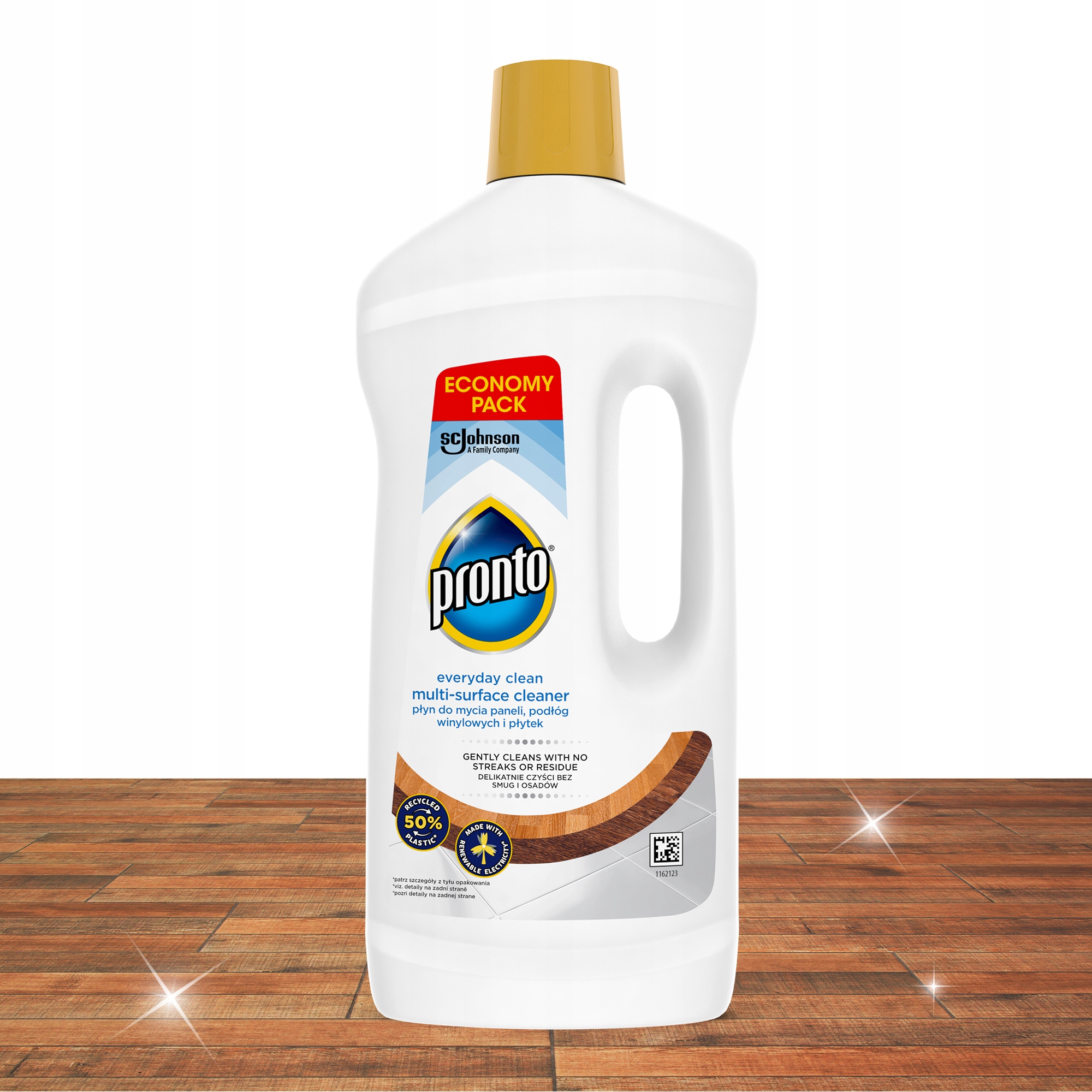 Містить доглядову формулу, яка легко видаляє бруд з підлоги, не залишаючи смуг. Насолоджуйтесь природним блиском підлоги та освіжаючим ароматом.