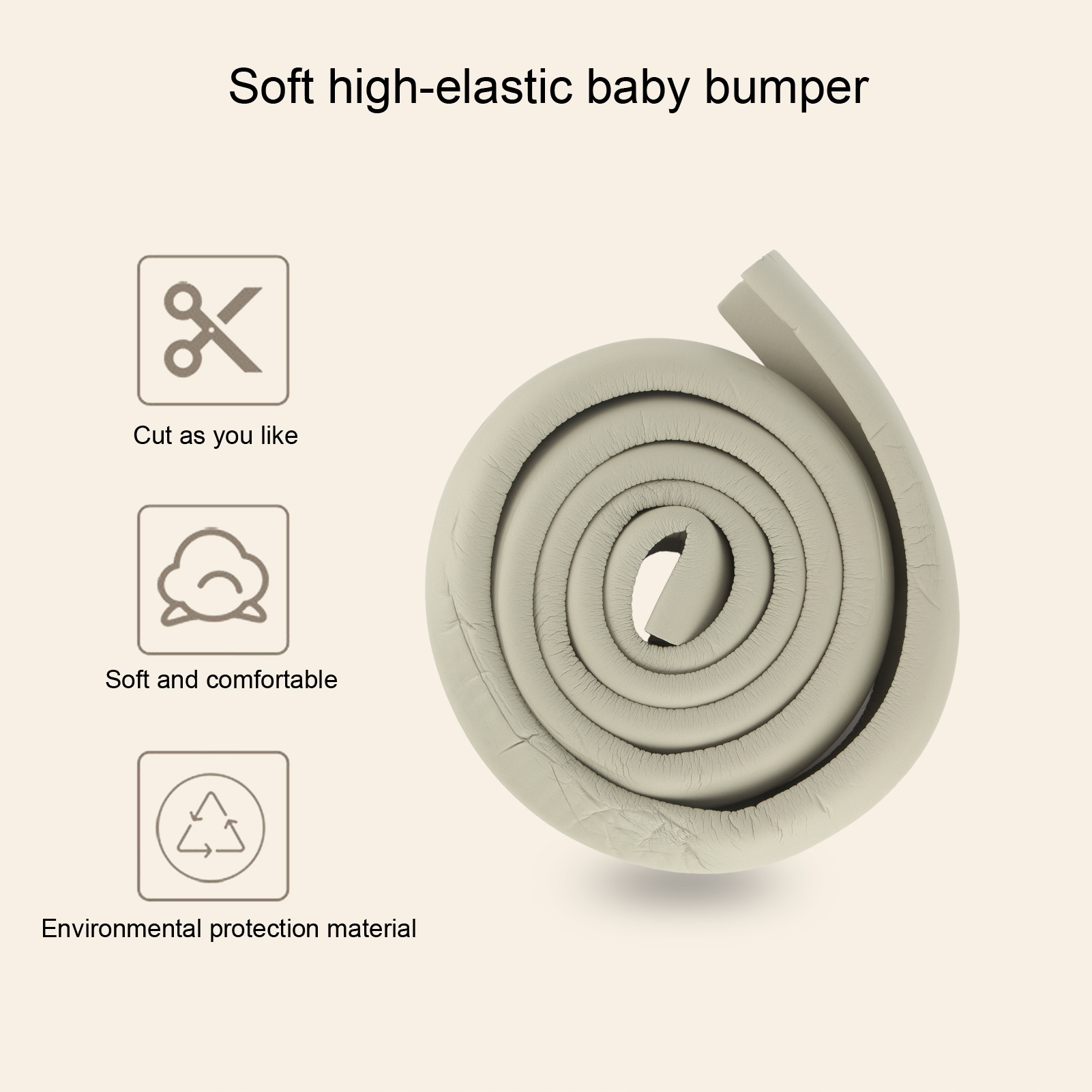 4. Виготовлений із зручного та приємного до шкіри спіненого гумового матеріалу, стійкого до розривів та міцного, ефективно запобігає травмуванню дітей об меблі.