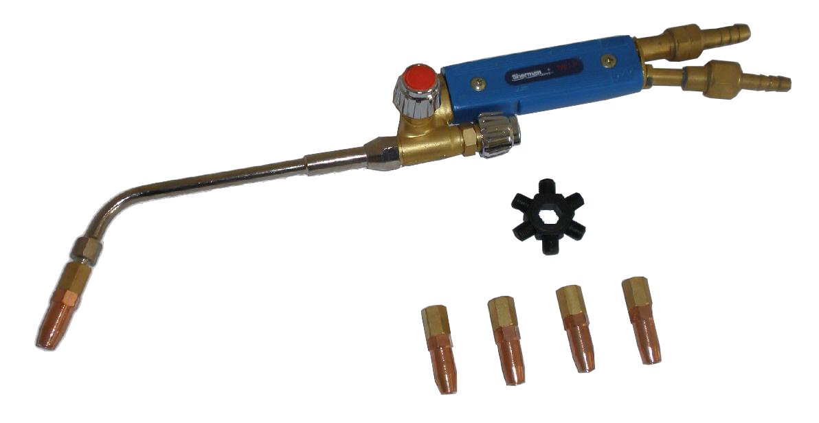 Кисень регулюється за допомогою спеціального шпинделя, який служить запірним клапаном. Подача горючого газу регулюється клапаном горючого газу. Пальники призначені для пайки металів і сплавів, нагріву і випалу.