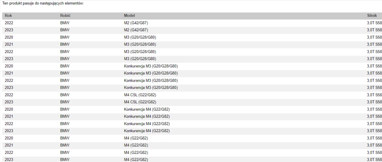 Цей потужний впускний комплект розроблено для моделей M2, M3, M4 і продуктивних моделей 2020–2023 років із 3,0-літровими бензиновими двигунами з турбонаддувом S58.