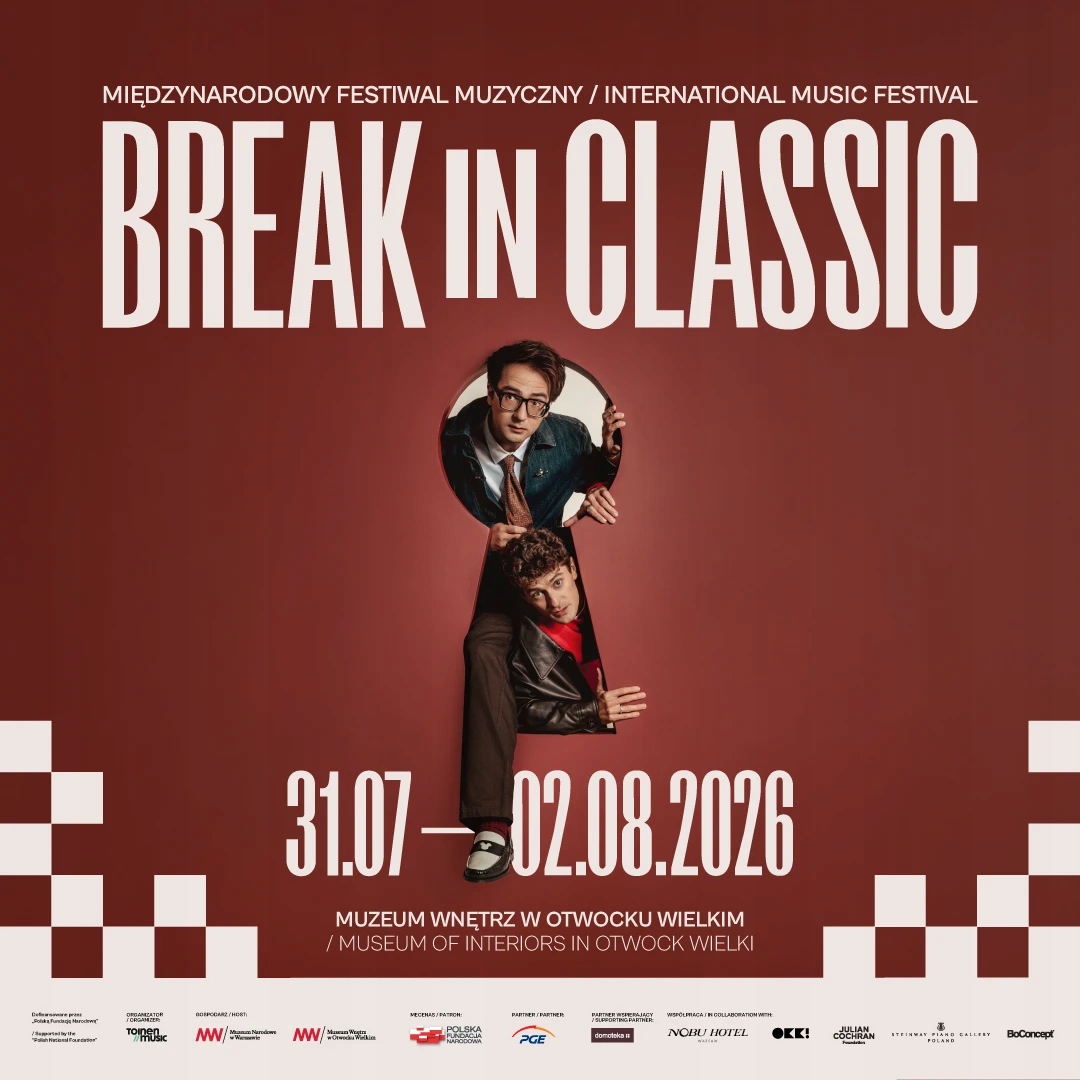 Break in Classic — це унікальна подія на культурній карті Польщі та Європи, започаткована в серпні 2025 року. Після успіху першого видання фестиваль повертається, щоб знову поєднати найвищий рівень перформансу та мистецтва з унікальним місцем — палацом у стилі бароко на озері Рокола в Отвоцьку Великому. Програма Break in Classic 2026 Це пропозиція для тих, хто шукає щось більше, ніж чудова музика – досвід, який поєднує мистецтво, історію та контакт з природою. Місцевий ландшафт, історичні інтер’єри та затишна атмосфера створюють незабутнє середовище для сприйняття класичної музики тощо. Художніми керівниками фестивалю є митці світового класу: Якуб Юзеф Орлінський та Александер Дебіч, які стоять за новаторським баченням, яке робить класичну музику доступною, захоплюючою та зовсім іншою, ніж ви її знаєте. Чекає на вас: ⦁ 3 дні музики просто неба та в історичних місцях. ⦁ Артисти світового рівня (повний склад буде оголошено незабаром). ⦁ Концерти художніх керівників: Якуба Юзефа Орлінського та Олександра Дебіча. ⦁ Тиха дискотека в палацовому парку. ⦁ Зустрічі з художниками. ⦁ Відпочиньте у фудкорті та парку навколо палацу. Перерва в Classic - Квитки Квитки на фестиваль персоналізовані - при купівлі просимо вказати ім'я та прізвище кожного учасника. Дані можна змінити один раз за додаткову плату. Вхід для осіб з 16 років (молодші тільки під наглядом дорослих). Дітям до 3 років - вхід безкоштовний. Діти 4-12 років (включно) - знижка 50%. VIP-перепустка включає: вхід на всі заходи фестивалю, VIP-парковку, вхід через окремий хвірток до фестивальної зони, доступ до VIP-зони з безкоштовними напоями та закусками.