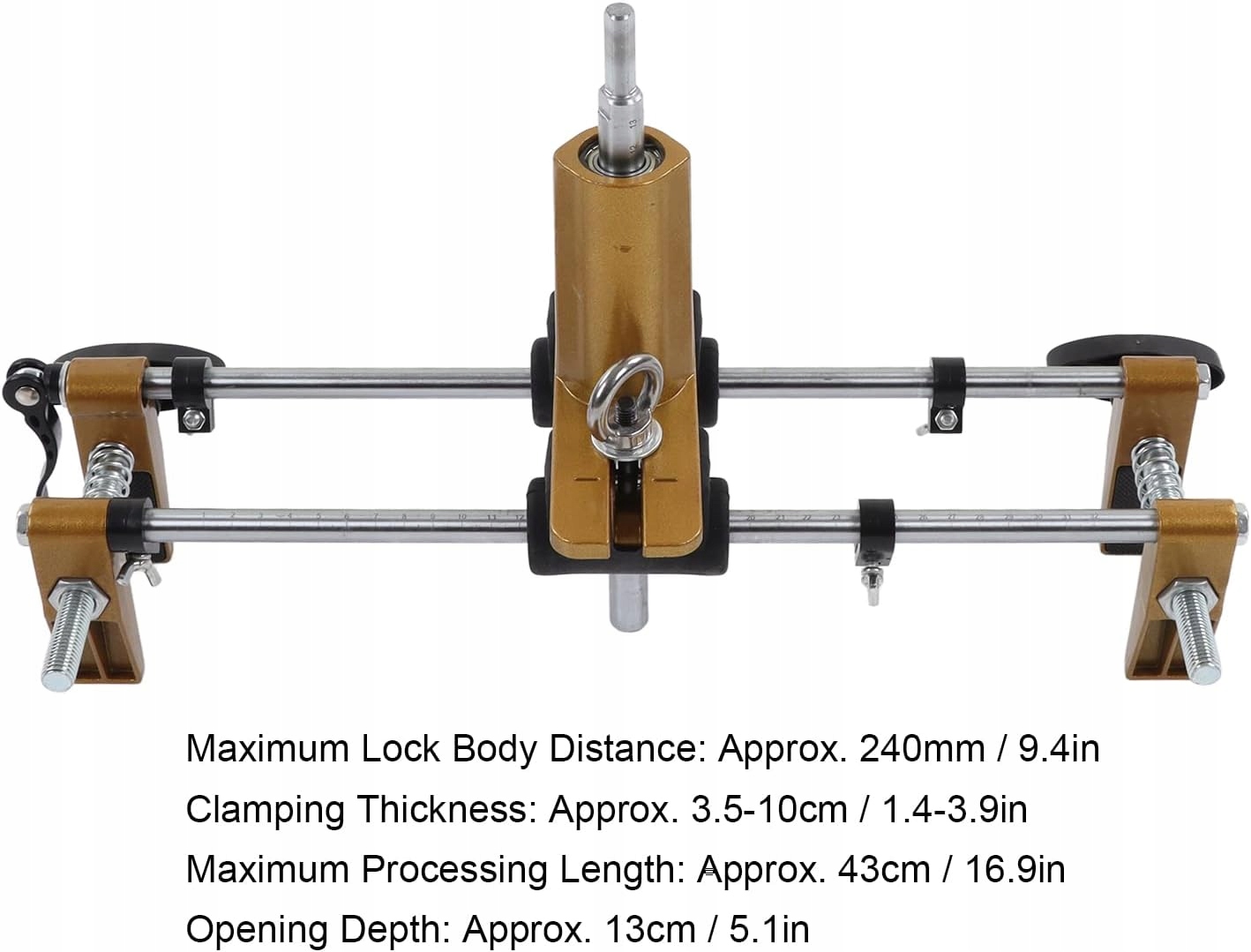 ПОДВІЙНИЙ ПІДШИПНИК. Пристрій для відкривання замкового отвору розроблено з подвійними підшипниками, а подвійні напрямні ковзання забезпечують більш стабільну роботу та точне пробивання. ШВИДКЕ БЛОКУВАННЯ 4 обмежувальні кільця використовуються для визначення довжини отвору, і довжина швидко фіксується відповідно до ширини голівки блискавки, зручною для використання. ПИЛОЗАХИЩЕНА КРИШКА Силіконова пилозахисна кришка може ефективно входити в підшипник, щоб уникнути заклинювання та запобігти удару повзуна об упорне кільце. ЛЕГКЕ РЕГУЛЮВАННЯ Направляючу опору сидіння можна вільно регулювати ліворуч і праворуч, відкрита конструкція робить робочий простір більш гнучким і надійним. ОБСЯГ РОБОЧОГО ЗАСТОСУВАННЯ Монтажна товщина становить 3510 см, а глибина різьби становить 13 см, що зазвичай використовується для встановлення та заміни замка для домашніх кімнат.