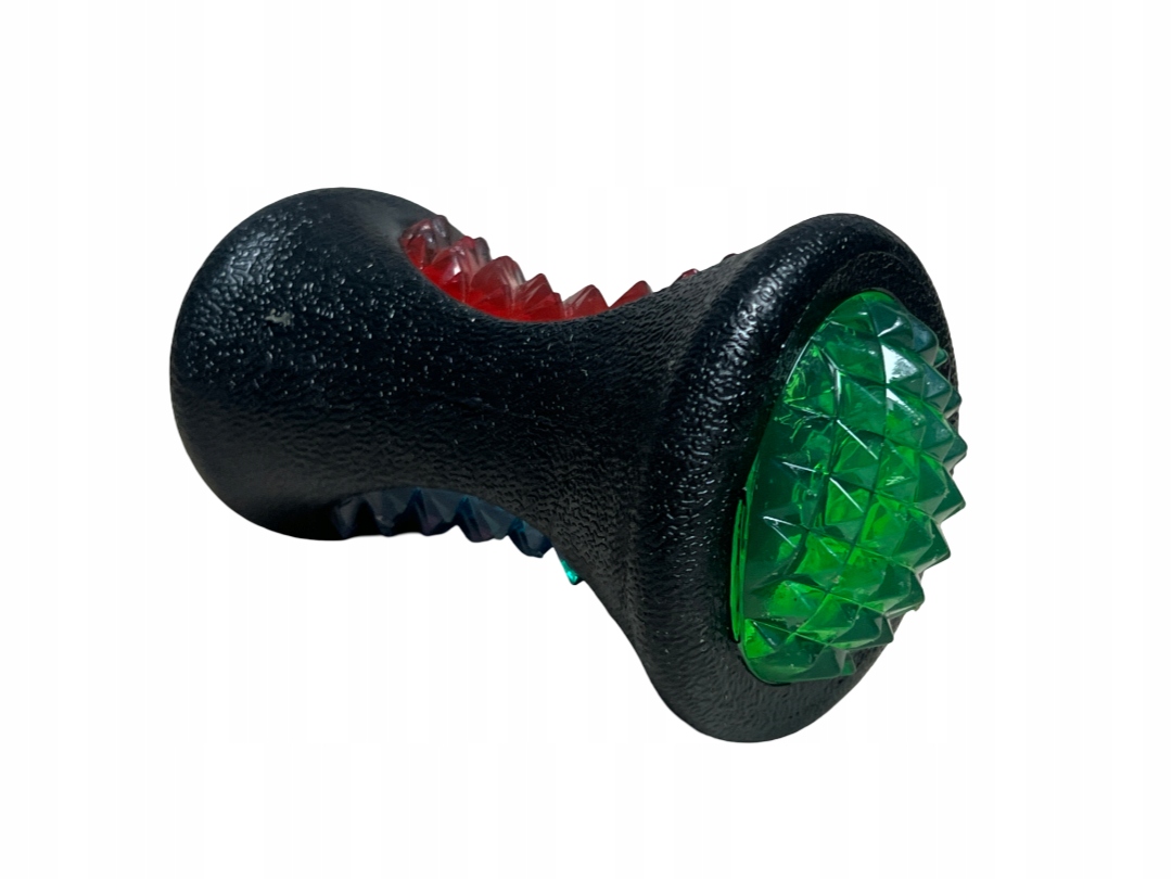 ВЕЛИКИЙ Опис продукту: Інтерактивний світиться м'яч у формі циліндра довжиною 12 см - це надзвичайна іграшка, яка принесе вашому улюбленцю багато радості та активності. Виготовлений з безпечної, нетоксичної термопластичної гуми, він гарантує довговічність і комфорт використання. Завдяки спеціальним виступам іграшка не тільки підтримує гігієну порожнини рота, масажуючи ясна та допомагає видалити зубний камінь, але й забезпечує чудову розвагу за допомогою випадкових відскоків.