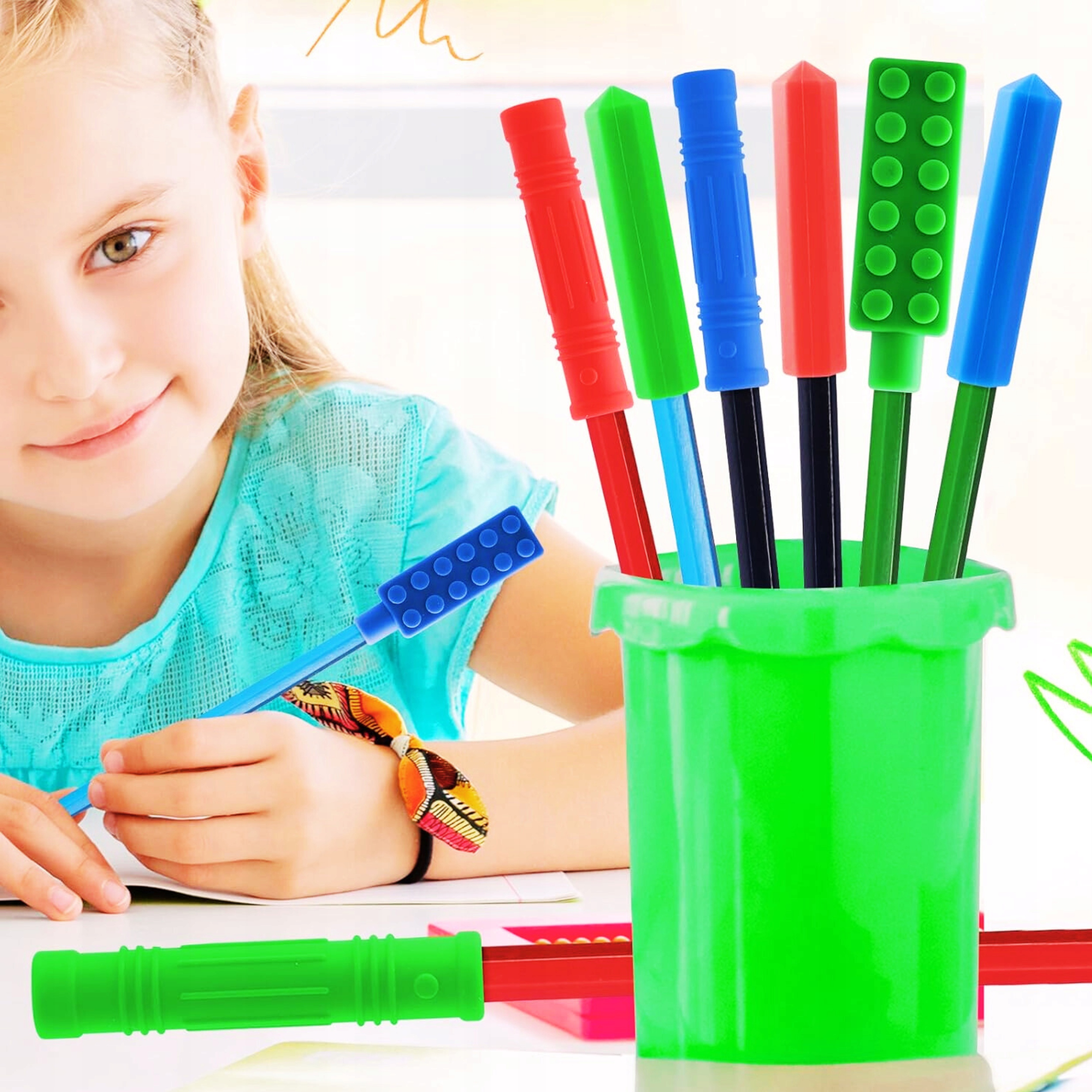 Це допомагає зняти напругу під час навчання та в класі, коли дитина реагує на стрес жуванням. Це безпечна альтернатива замість знищення олівців.