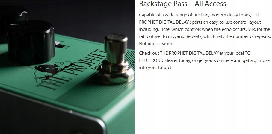 Компанія TC Electronic спеціалізується на виконанні високоякісних гітарних ефектів за доступними цінами. Пророк Цифрова затримка - це один із ефектів затримки, який може запропонувати компанія, але якщо ви шукаєте іншу модель, або, можливо, ефект модуляції, ревербу або дривю - ви можете знайти їх на наших аукціонах Allegro guitar_sklep_pl .