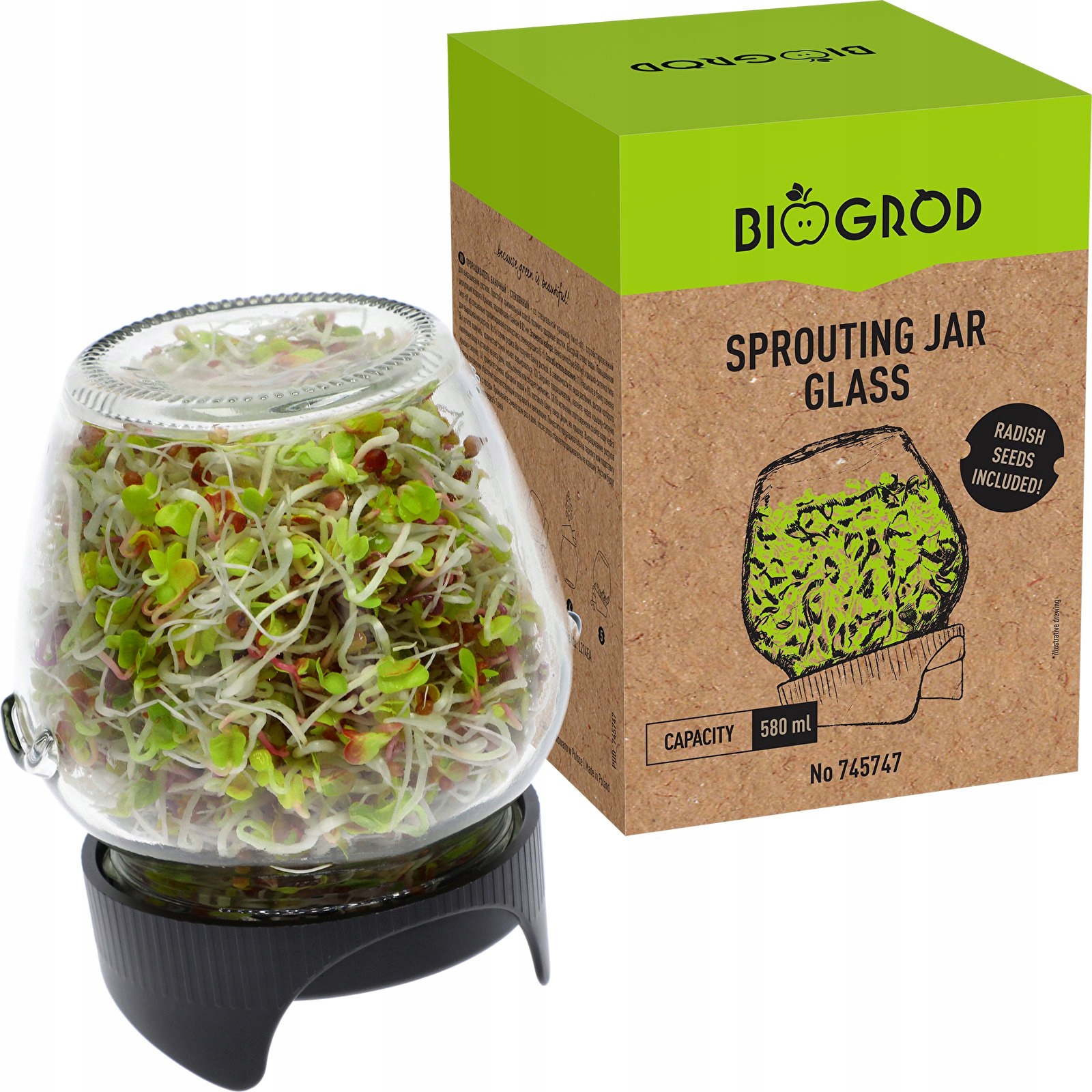 Наш інноваційний пророщувач із поворотною банкою має спеціально розроблену кришку, яка дозволяє вирощувати паростки в банці, нахиленій приблизно під кутом 15°.