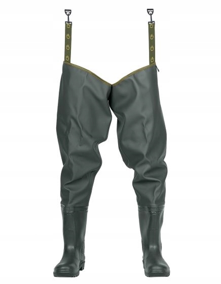 Водери з незмінно звареними високоякісними черевиками Wellington. Модель виготовлена з водонепроникного, міцного матеріалу, який забезпечує ефективний захист ніг від води. Технологія двостороннього зварювання підвищує міцність швів. Оснащений зручними гумовими опорами.