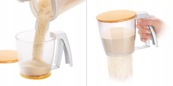 Ідеально підходить для швидкого просіювання борошна та цукрової пудри. З 2 кришками для зручного зберігання невикористаного вмісту. Сито виготовлено з міцного пластику. Можна мити в посудомийній машині. 3 роки гарантії.