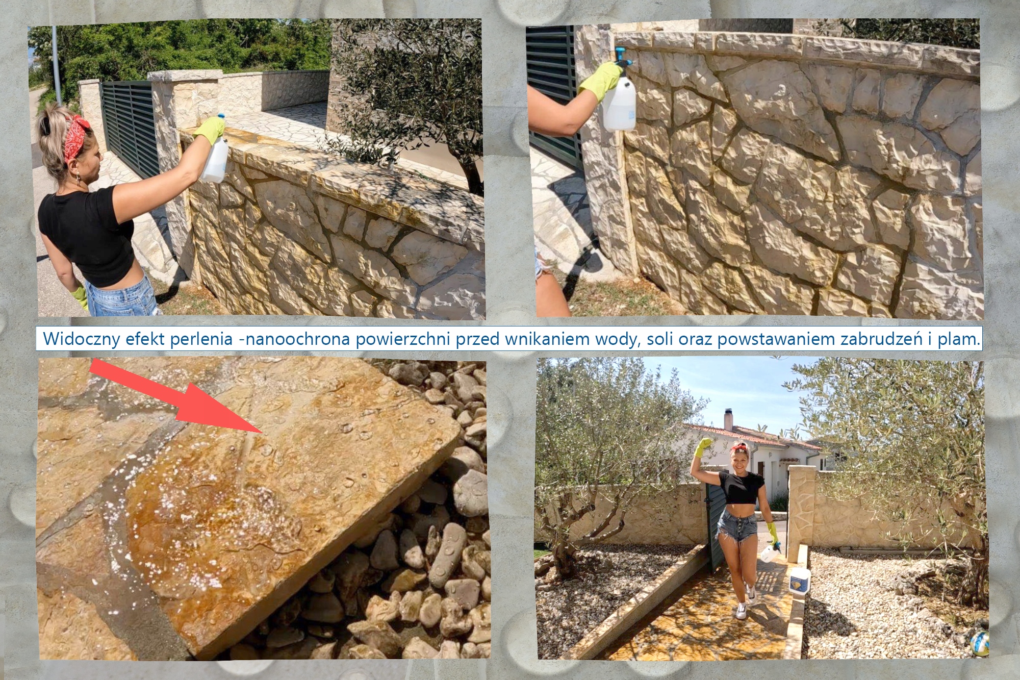 Імпрегнат для гідрофобного захисту піщаників усіх типів. Ідеально підходить для основ, стін і фасадів. Він хімічно захищає всю структуру матеріалу на нанометричному рівні, захищаючи його від проникнення води та вологи, а також від утворення бруду та плям. Це робить матеріал природно паропроникним. Захист стійкий до негативного впливу зовнішніх факторів, в тому числі УФ-випромінювання.
