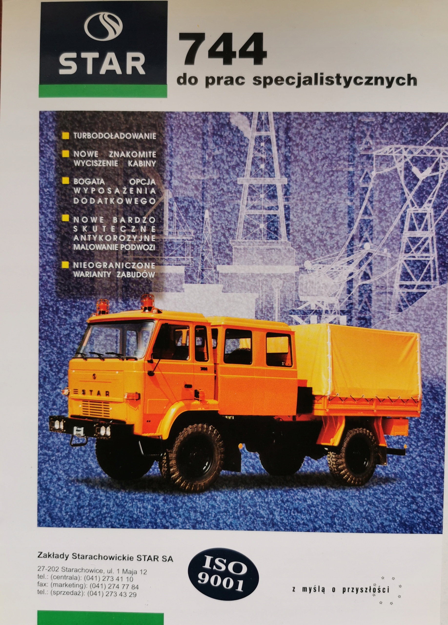 Проспект моделі STAR 744, технічні дані та обладнання польською мовою на звороті