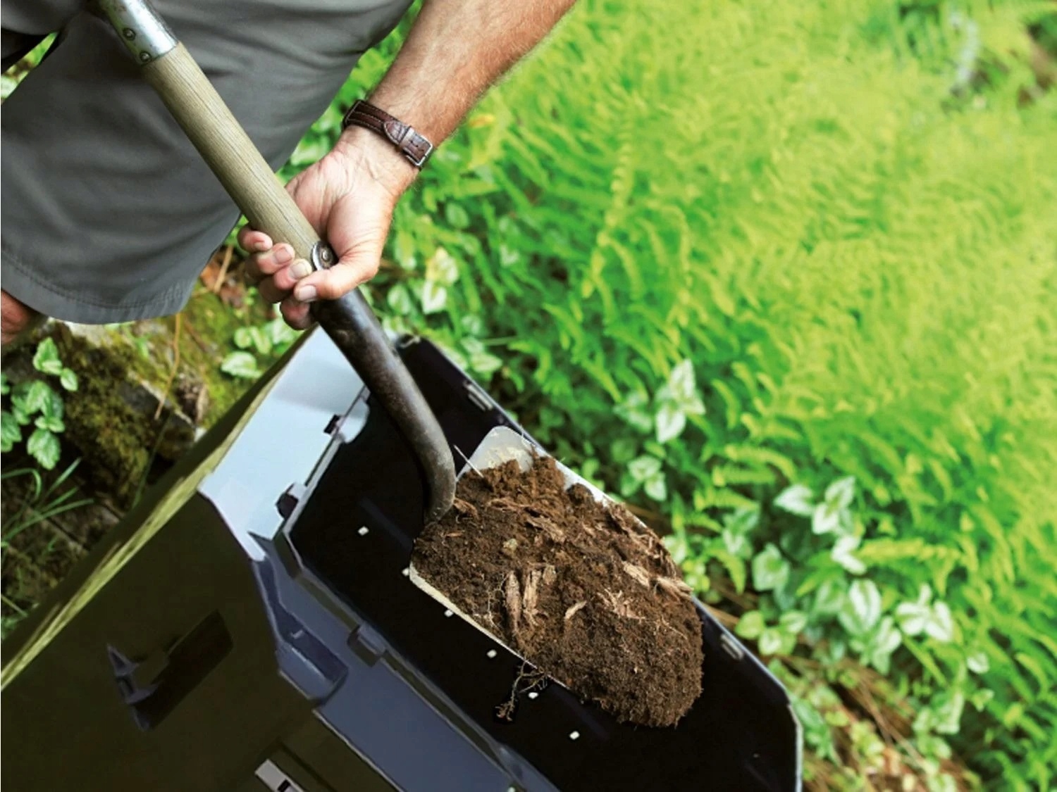 Кришка оснащена захистом від вітру, тому компост залишається на місці навіть при сильному вітрі. Ви також можете зручно використовувати захист від вітру для кращої циркуляції повітря. Компостер також отримує достатньо повітря завдяки вентиляційним отворам збоку. Компост можна легко видалити за допомогою ковзного клапана внизу.