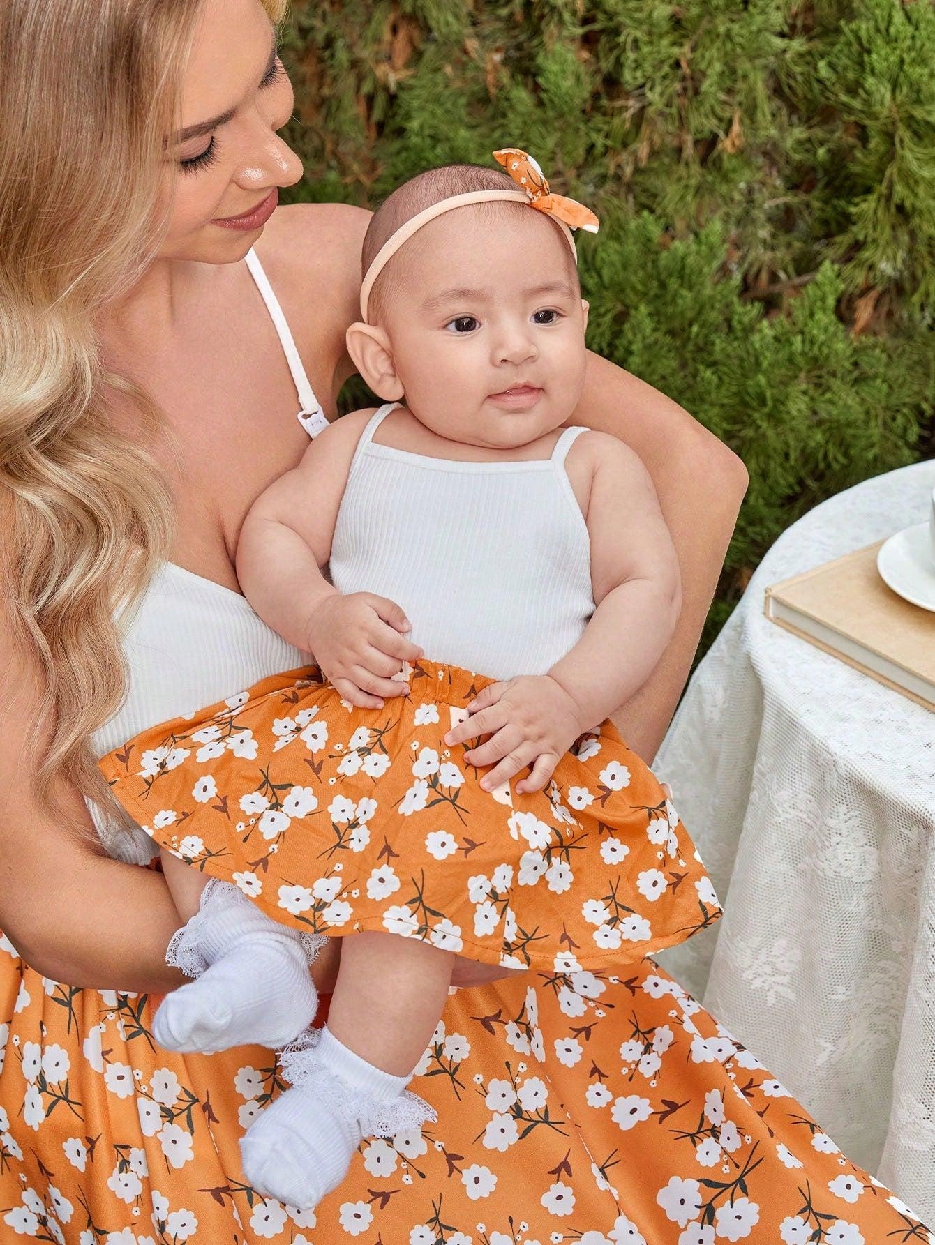 PROSTA SPÓDNICA WZÓR KWIATY SHEIN 38 CIĄŻOWY KOMPLET BIAŁY TOP POMARAŃCZOWA