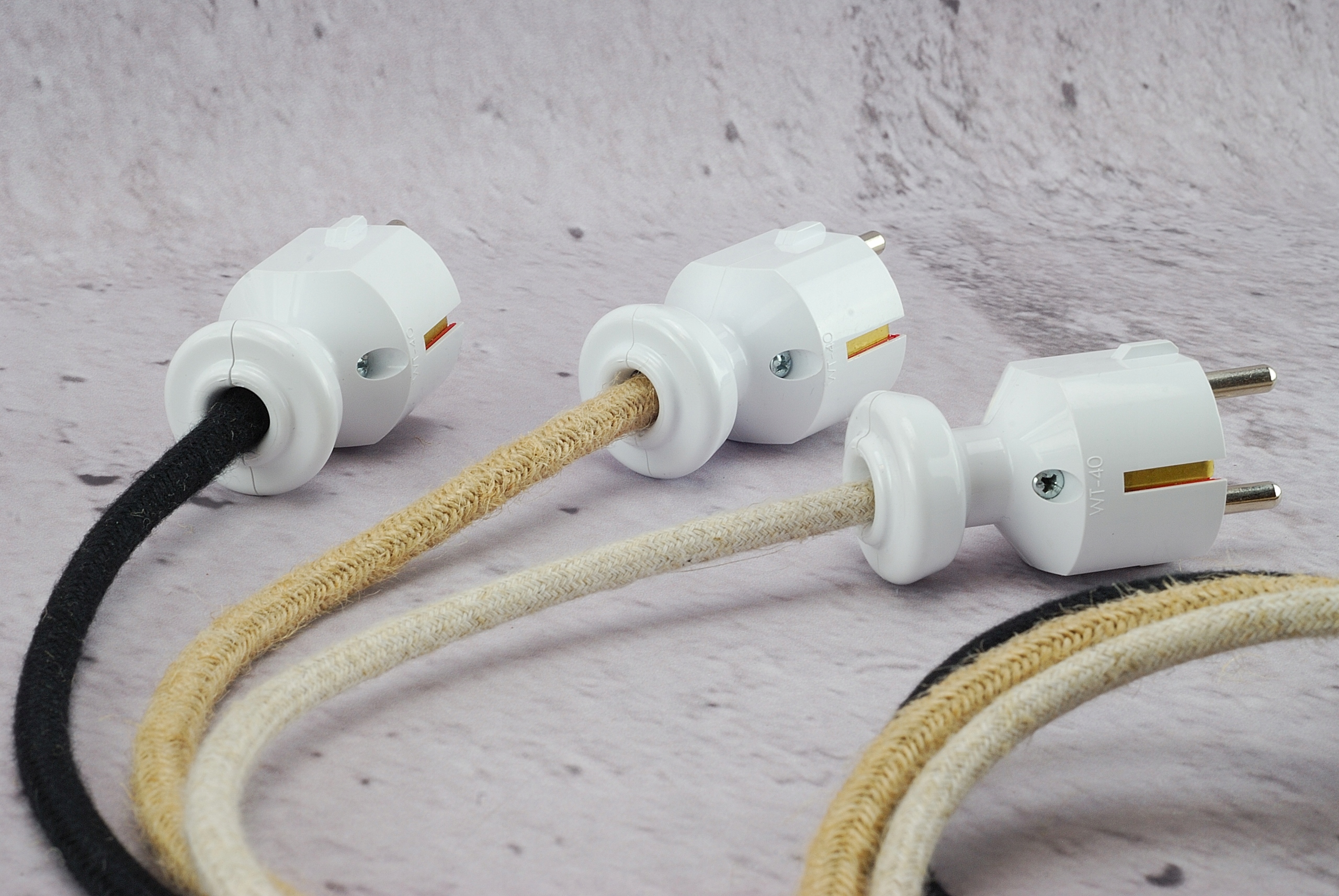 prosta wtyczka 230V 16A LOFT design retro do kabla w oplocie lampa loft DIY